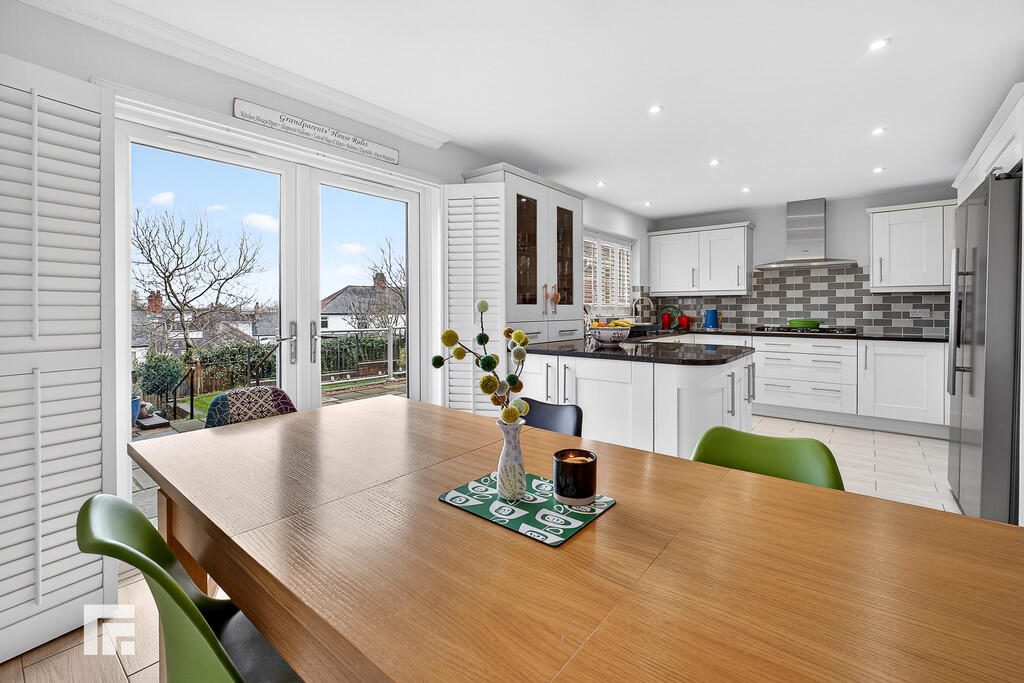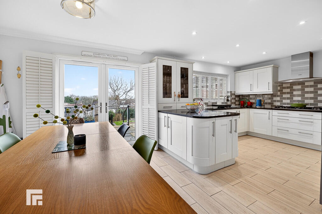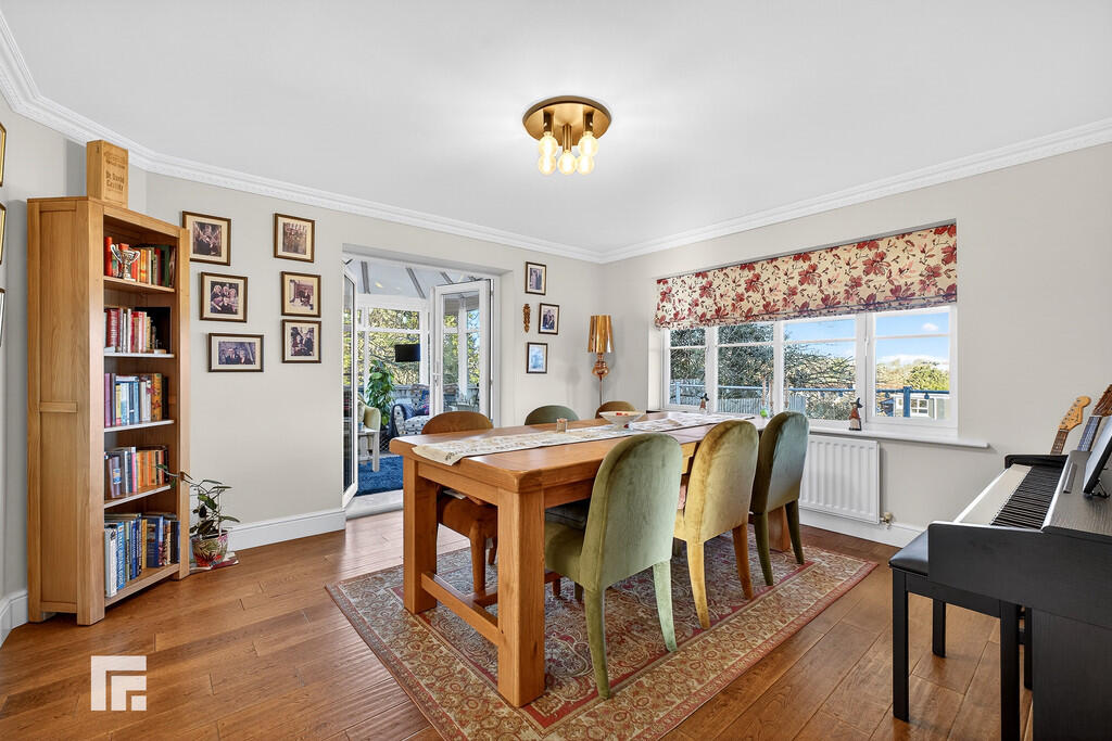 DININGROOM13' 4" x 11' 11" (4.07m x 3.65m) A spacious dining room. Radiator. Continuation of wood flooring. uOVC window to rear. Door leading to hallway. Double French doors opening into conservatory.