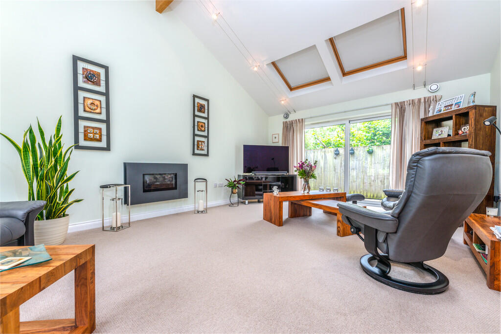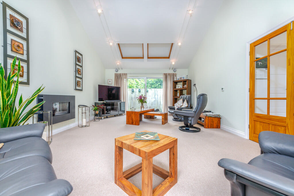GARDENROOM22' 2" x 14' 2" (6.78m x 4.33m) Feature vaulted beamed ceiling. Five leaf bifold doors to garden and sliding doors to side passage plus two double glazed velux windows to side. Modern gas fire place. Underfloor heating.