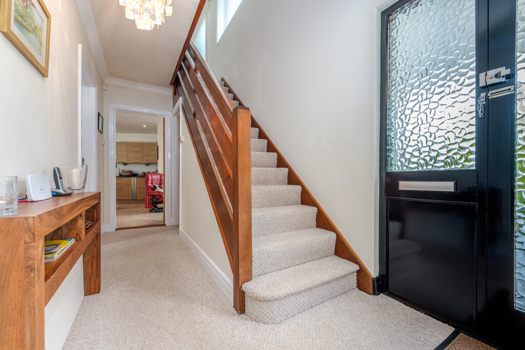 HALLWAY Entered via glazed front door into hallway. Glazed doors to lounge, dining room, kitchen/breakfast family room and WC. Radiator. Stairs to first floor.