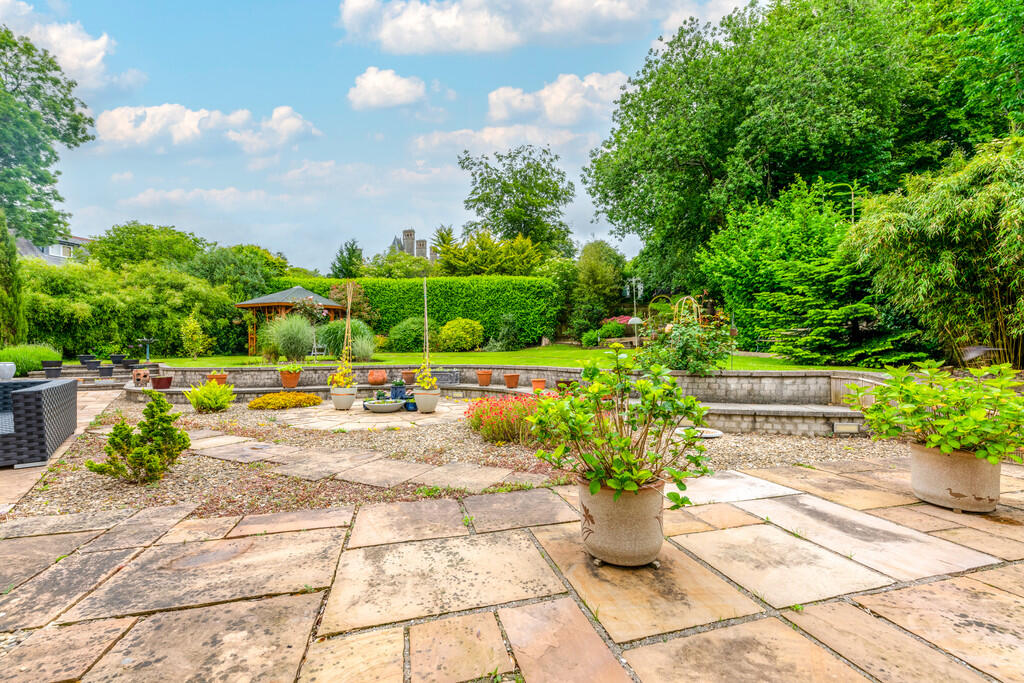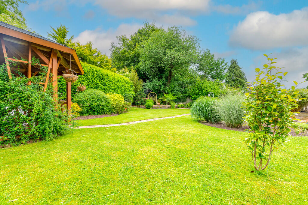 REARGARDEN A large, corner plot with immaculately presented front and rear gardens. The gardens are extremely well manicured with an abundance of mature trees, hedges and flower borders. Good size paved patio area to the rear also.