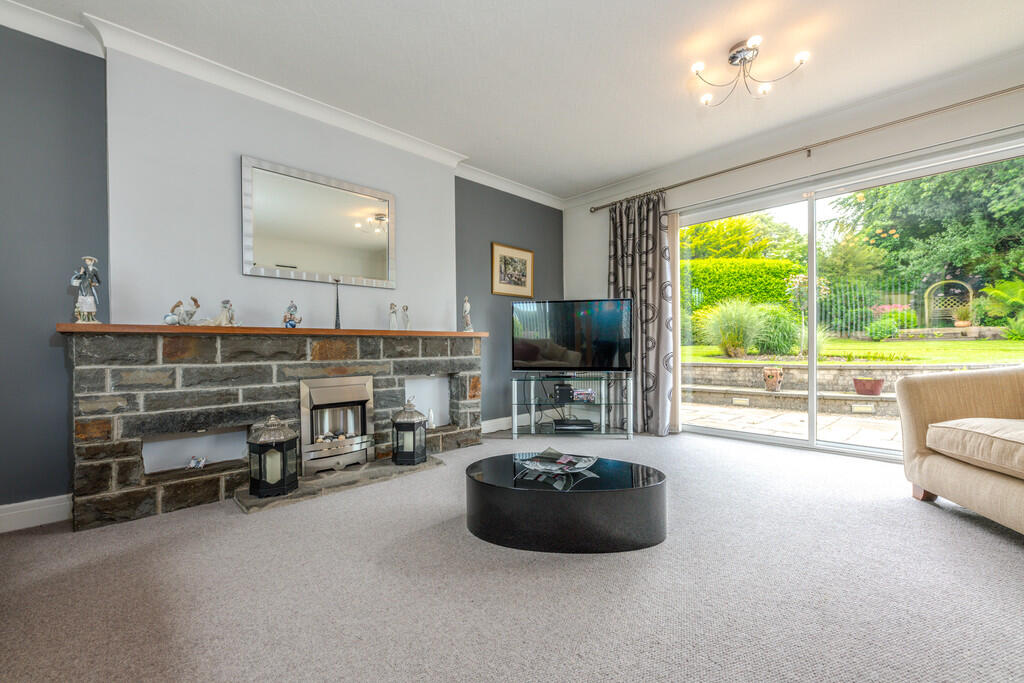 LOUNGE17' 10" x 14' 11" (5.45m x 4.57m) Double aspect with uPVC double glazed window to front and sliding doors to rear, both with beautiful views. Stone fire surround with inset gas fire. Three radiators.