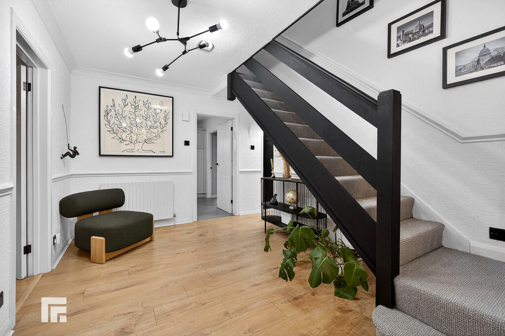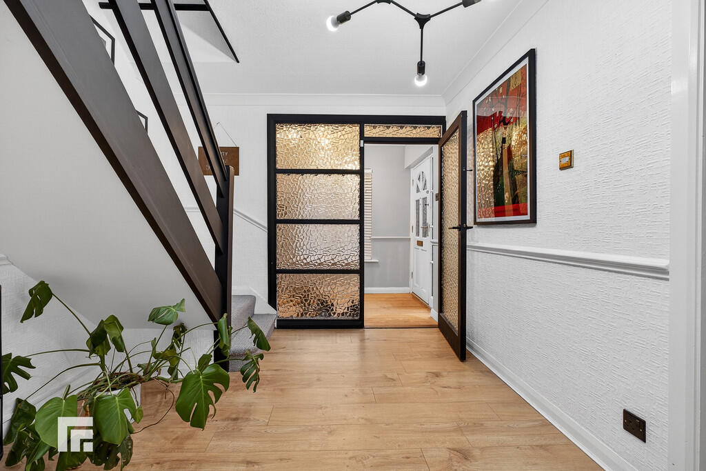 ENTRANCEHALLWAY13' 3" x 9' 4" (4.06m x 2.85m) Approached via a wood framed entrance door with majority obscured glass leading to the spacious entrance hallway. Staircase to first floor. Storage cupboard. Laminate flooring. Radiator.