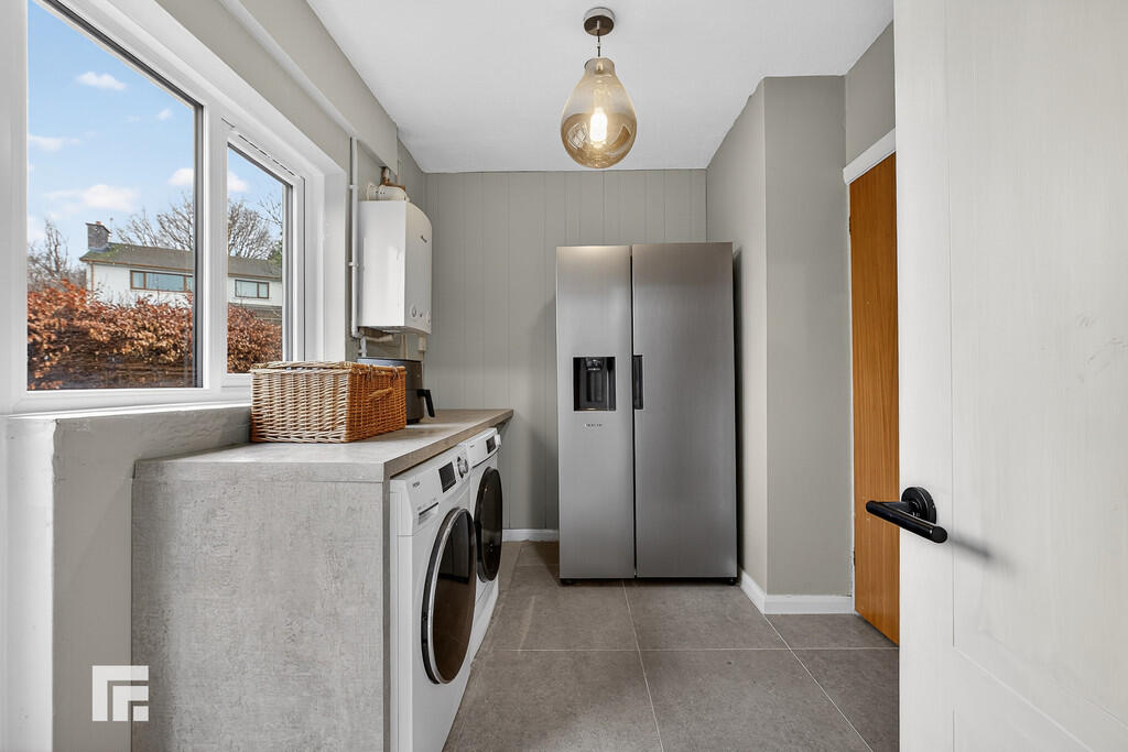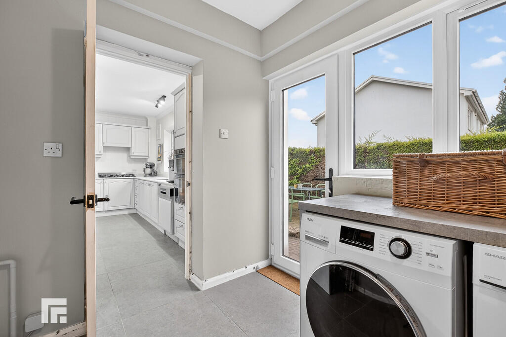 UTILITYROOM10' 3" x 7' 6" (3.14m x 2.31m) With worktop to one side. Plumbing for washing machine. Space for tumble dryer. Space for American style fridge freezer. Window and door to rear patio. Tiled flooring. Wall mounted 'Worcester' gas central heating boiler. Pantry storage cupboard with shelving.