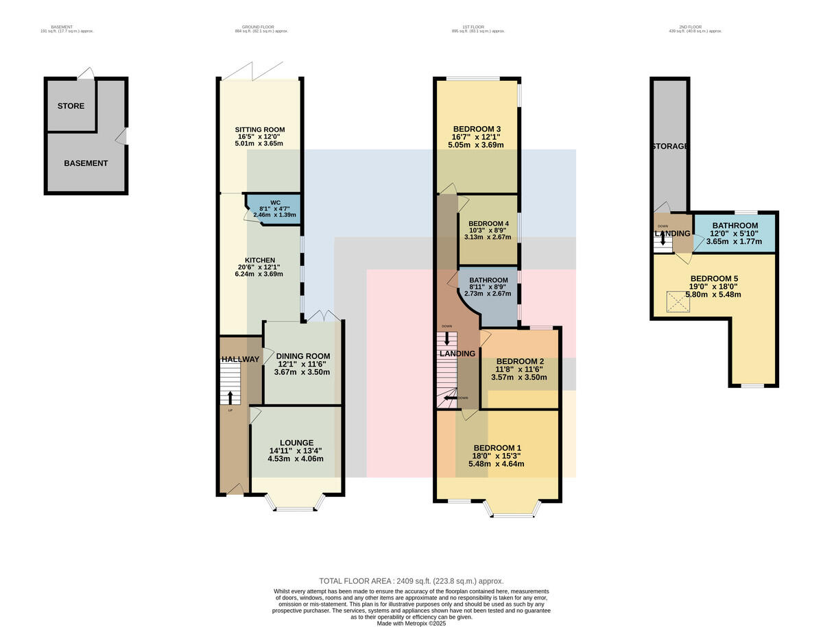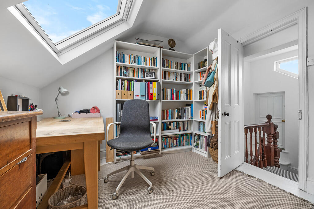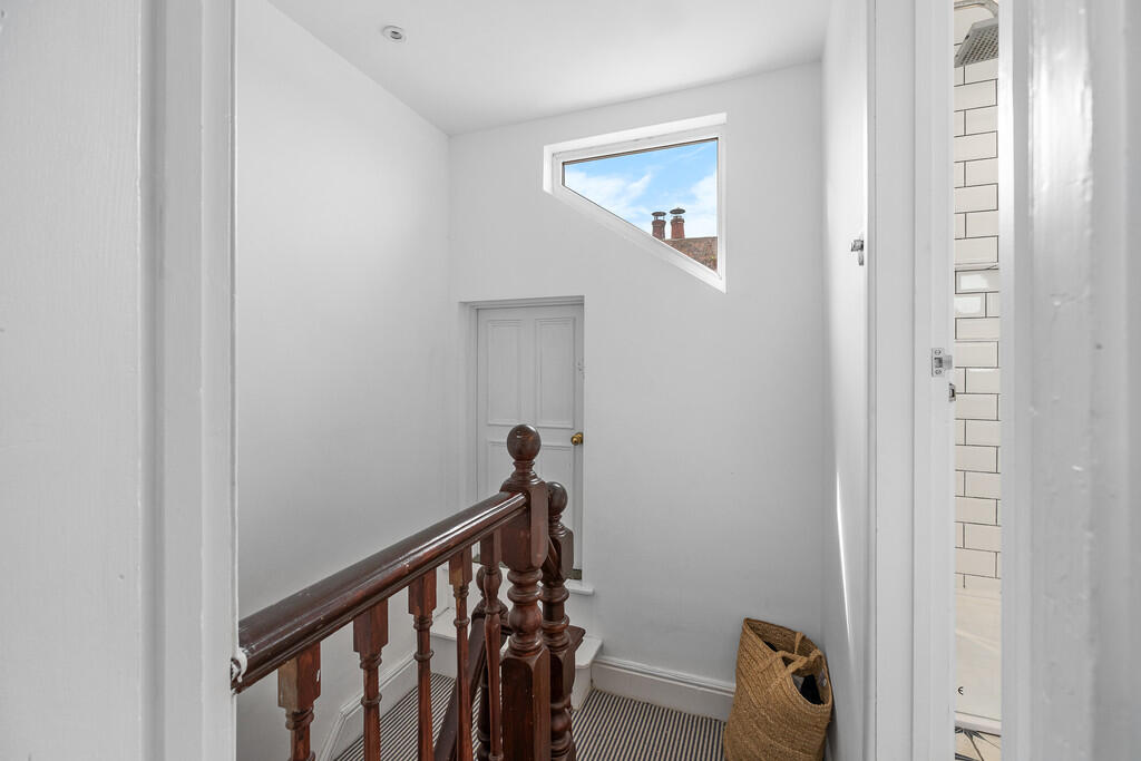 SECONDFLOORLANDING Carpeted stairs. Pendant light fitting. Doors to bedroom five and bathroom. Additional door leading to loft storage room with Velux windows and lighting.