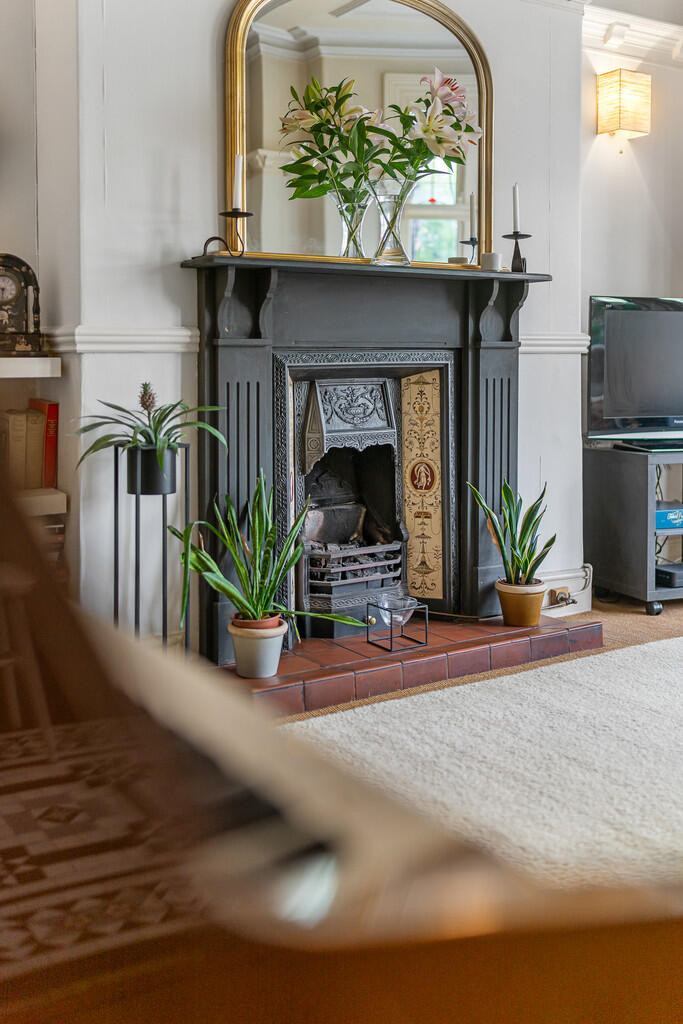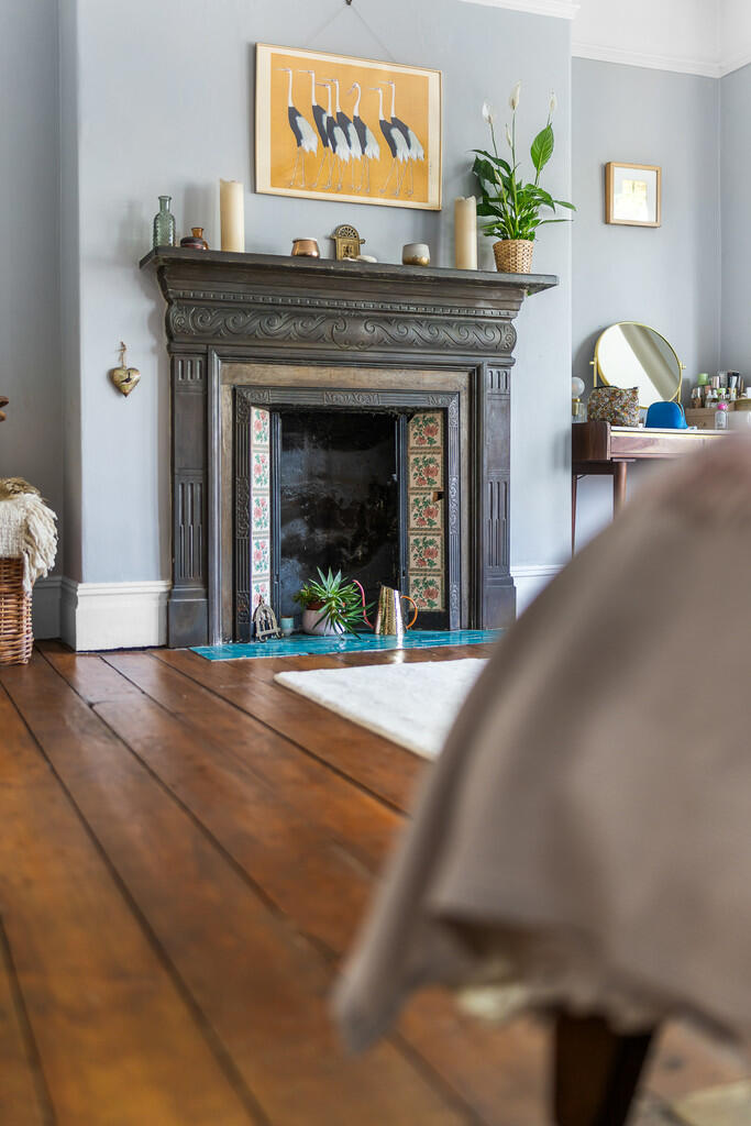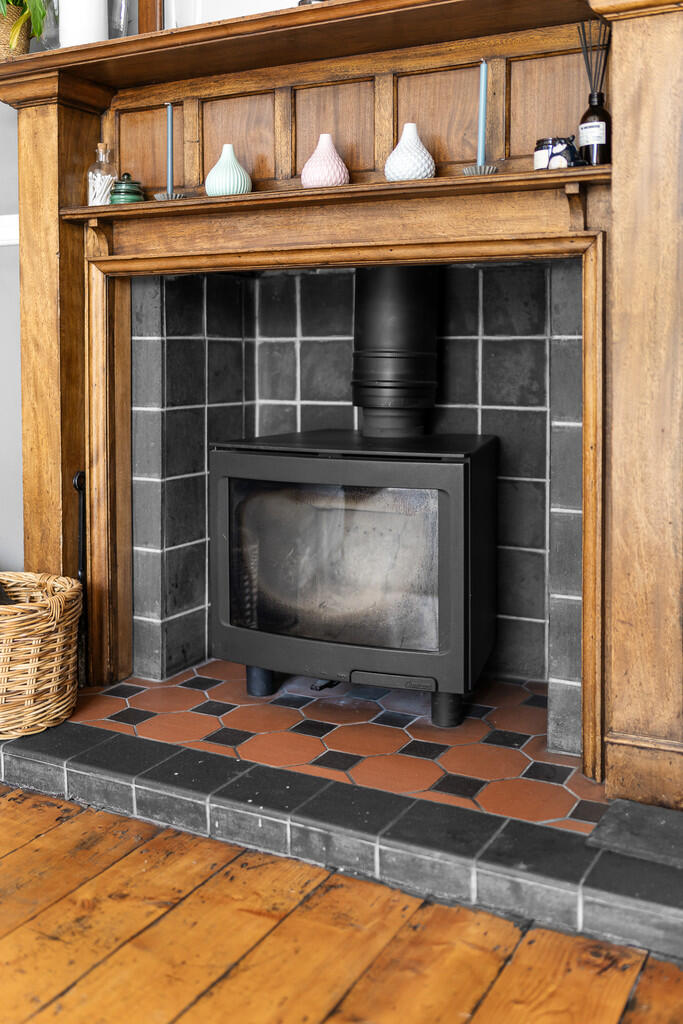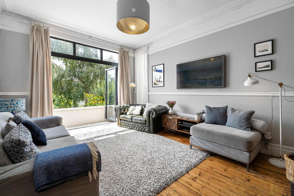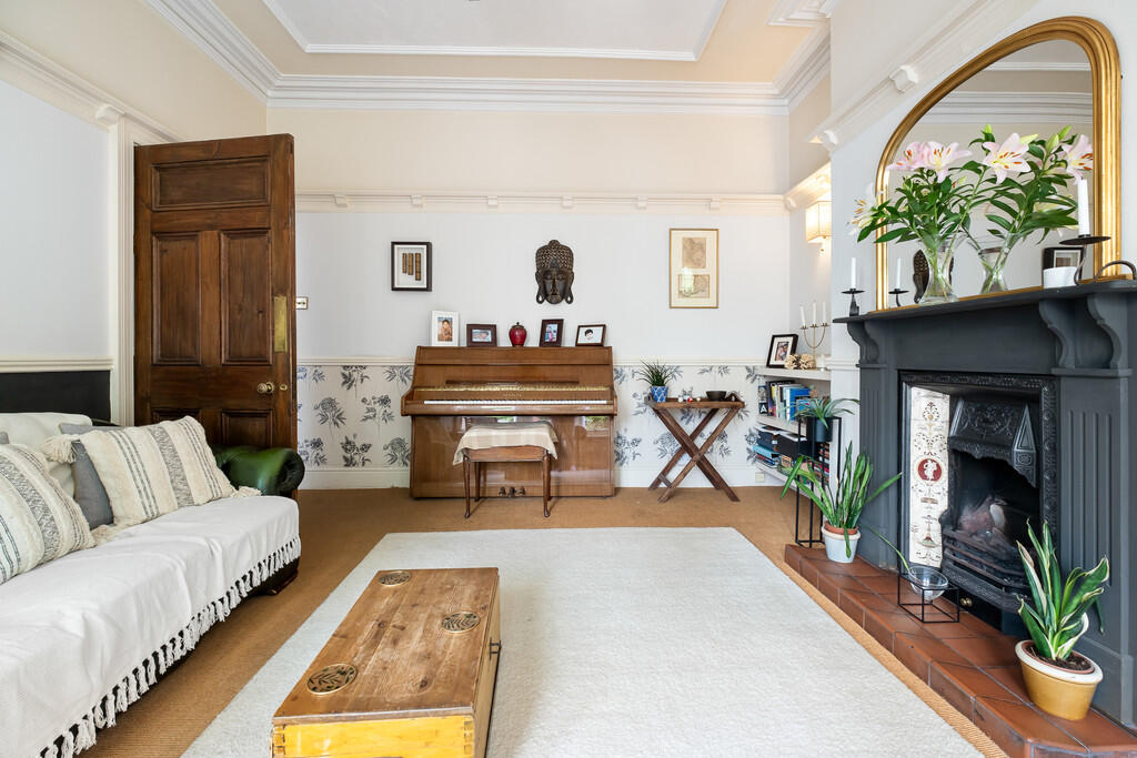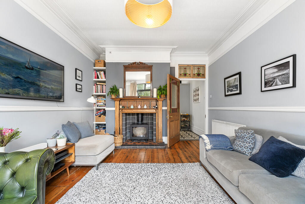 SITTINGROOM16' 5" x 11' 11" (5.01m x 3.65m) Double glazed window to side and bifold doors opening out to balcony overlooking garden with steps down to decking. Feature fireplace with wooden mantle with inset log burner and tiled base. Exposed floorboards. Coving. Picture rail and dado rail. Pendant light fitting. Radiator. Power points.