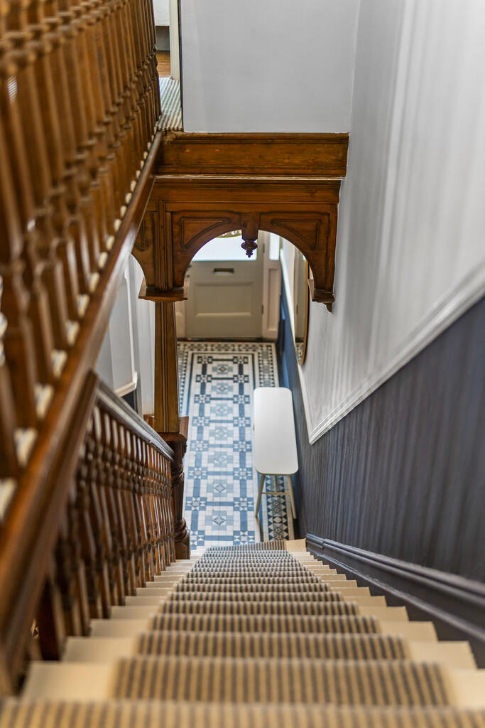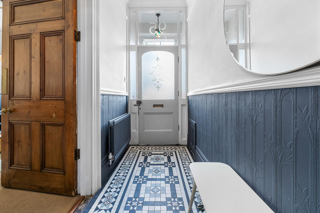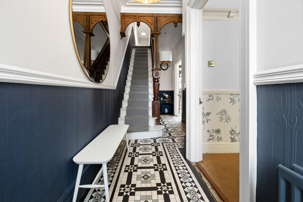 ENTRANCEHALL Entered via original front door leading from private tiled pathway from front courtyard. Original tiled flooring. Original coving to ceiling. Dado rail. Doors to lounge, kitchen/dining room and under stairs storage cupboard. Stairs rising to first floor. Pendant light fittings. Radiator.