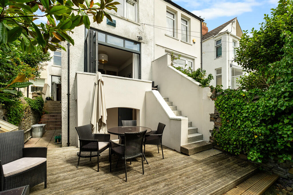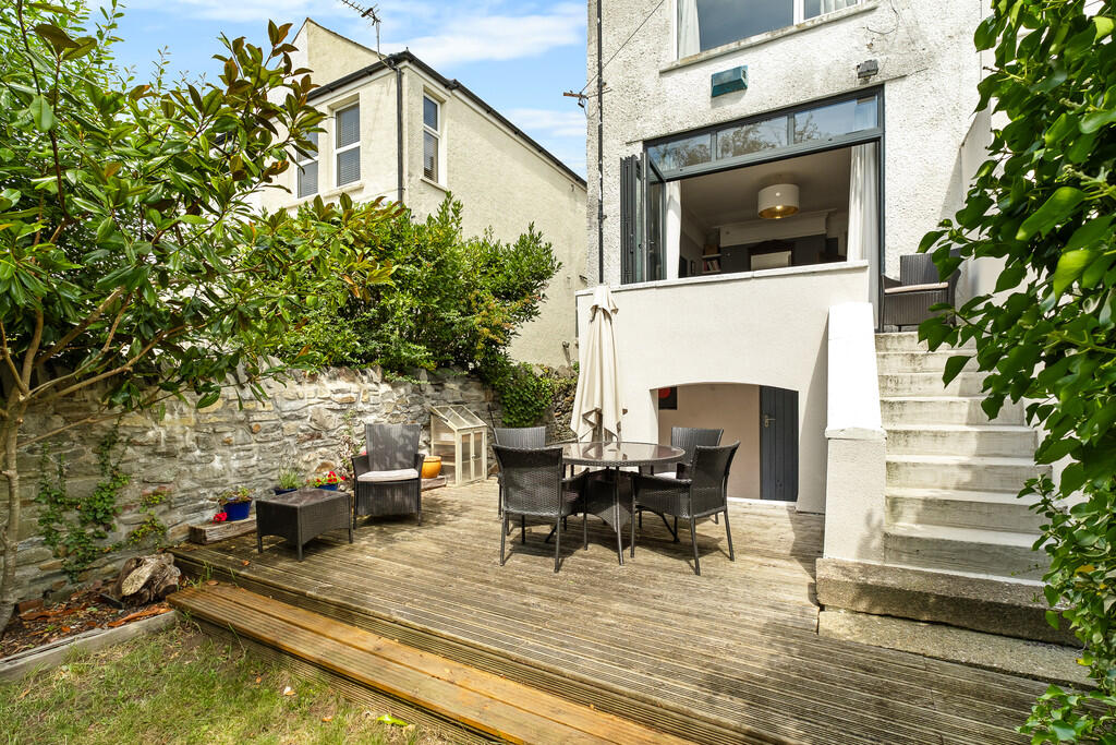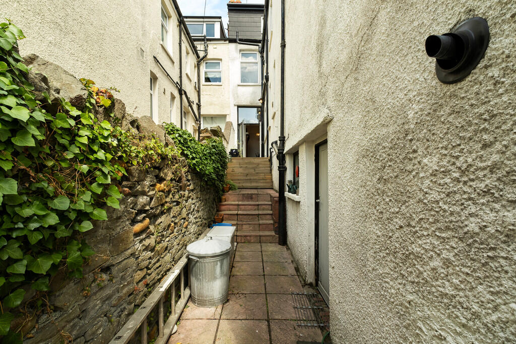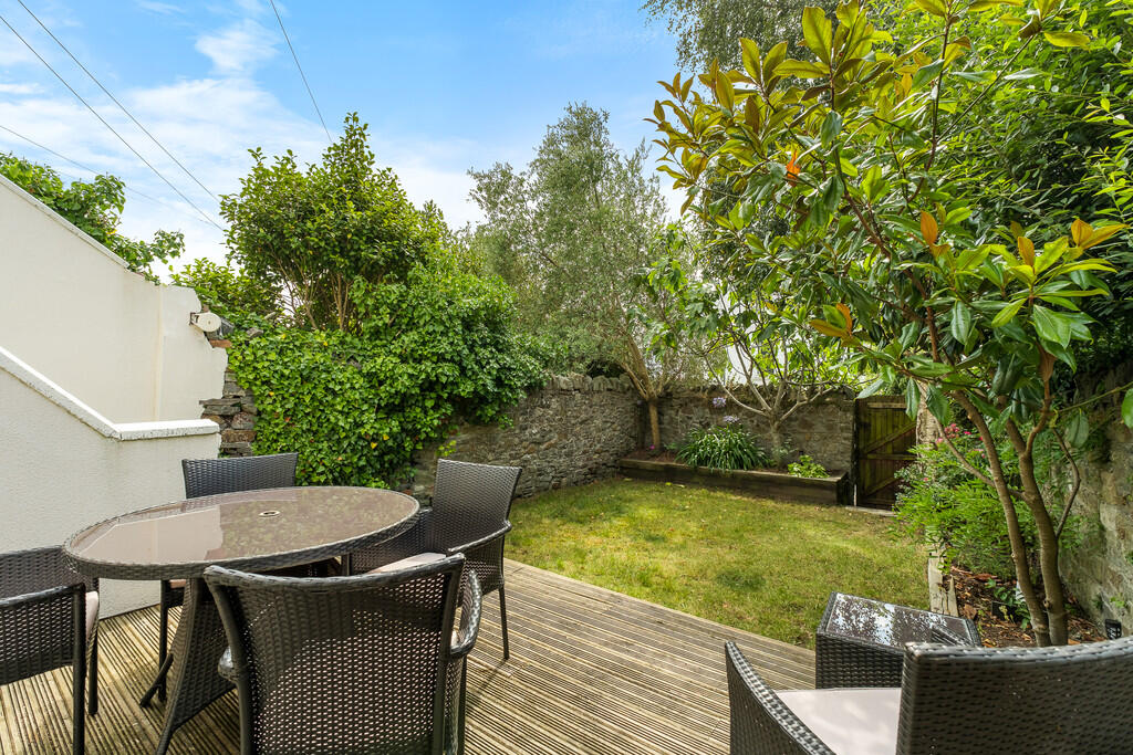 Rear - Excellent South facing garden. Part lawn, decked and laid to patio areas. Olive, Fig and Mature trees. Flower beds. Stone wall borders. Outside tap. Gated rear lane access. Doors to access two cellars.