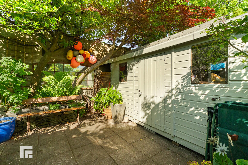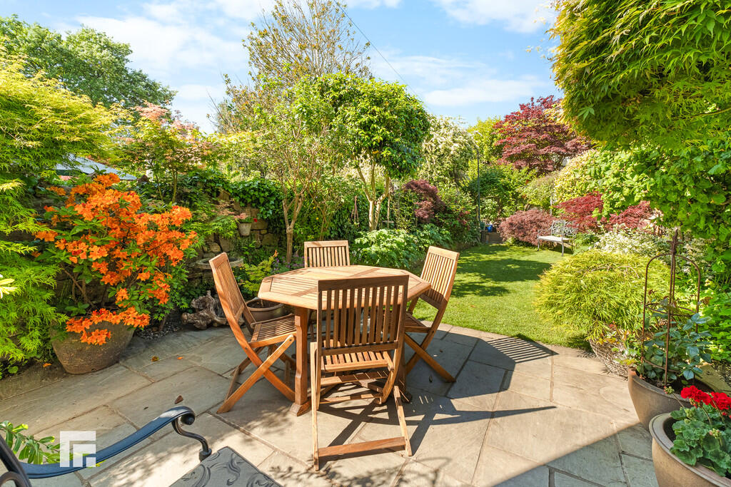 Rear - Laid to patio. Lawn area surrounded by established garden beds. Fence and wall border. Shed. Outside tap.