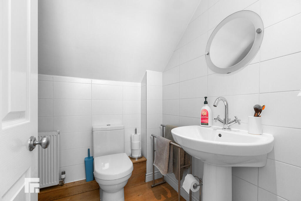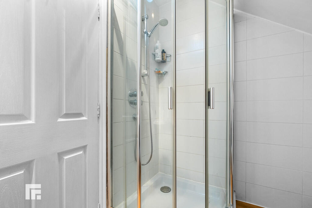 SHOWERROOM7' 2" x 5' 8" (2.20m x 1.74m) Solid oak flooring. Partly tiled walls. Spotlights. Pedestal wash hand basin with mixer tap over. WC. Walk in shower cubicle with mains powered shower over. Radiator.