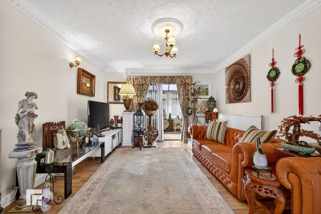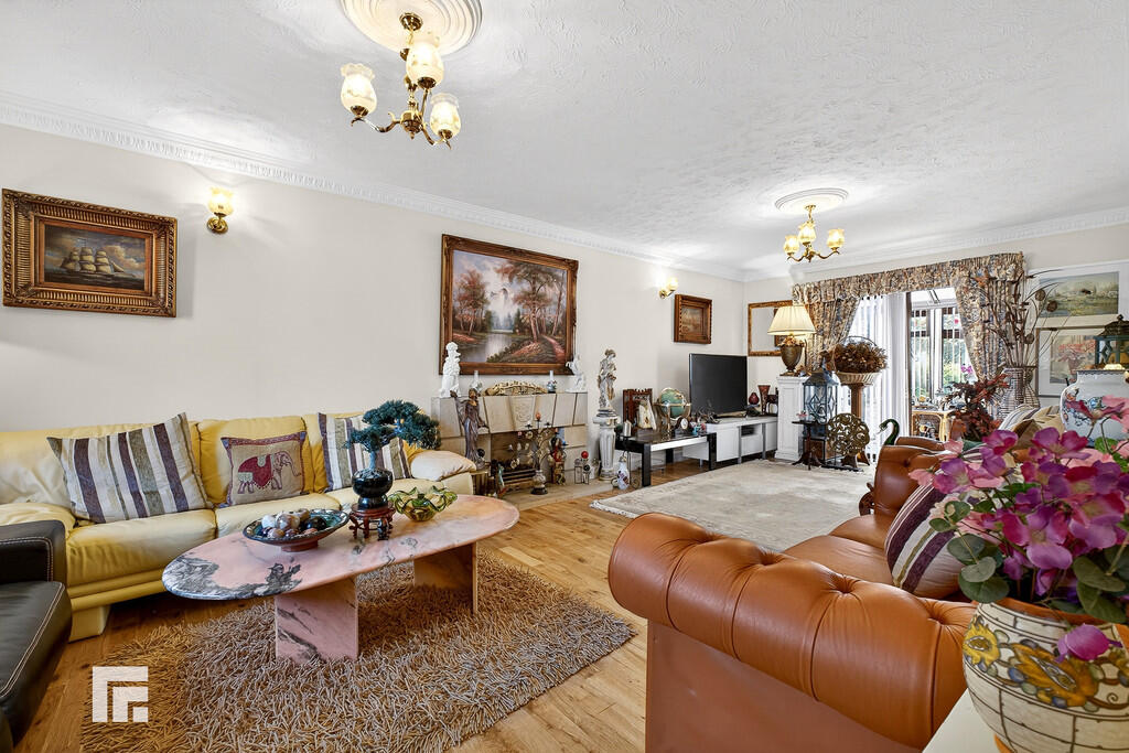 LOUNGE25' 8" x 9' 10" (7.84m x 3/66m) Double glazed window to front and aluminium sliding doors to rear conservatory. Oak wood flooring. Feature gas fireplace. Two radiators.