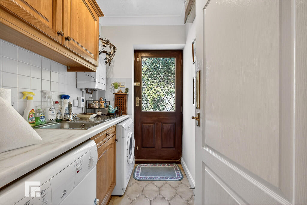 UTILITYROOM4' 11" x 6' 0" (1.51m x 1.85m) Fitted base and eye feel units incorporating stainless steel sink and drainer with complementary work surfaces. Space for washing machine and tumble dryer. Wall mounted gas central heating boiler. Tiled flooring and splash backs. Double glazed external door to side.