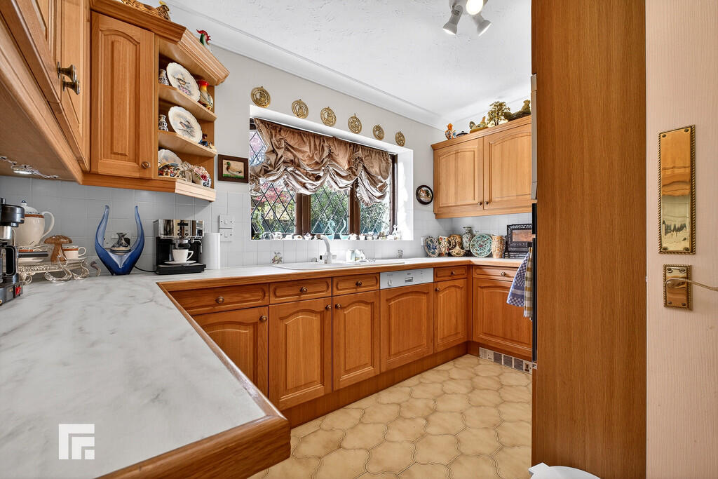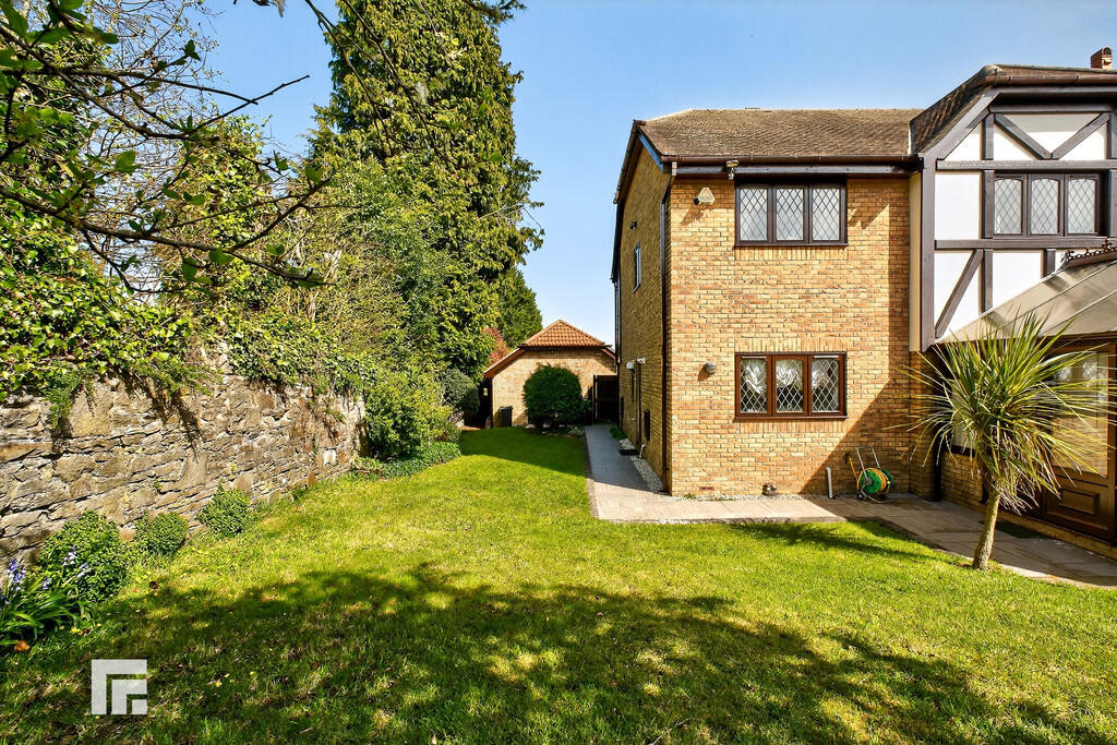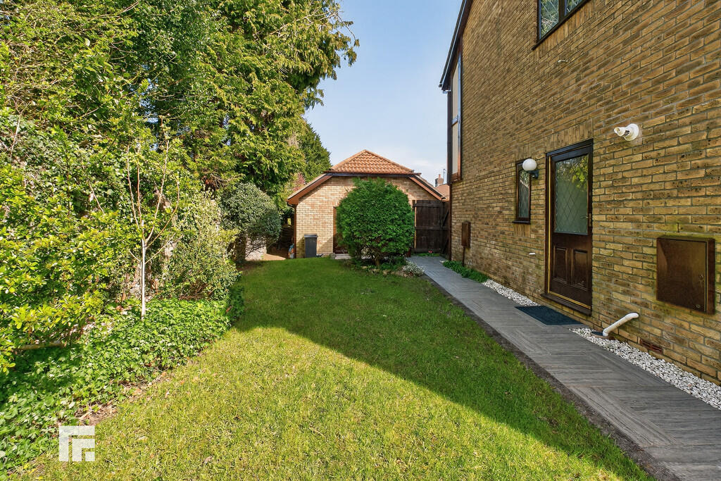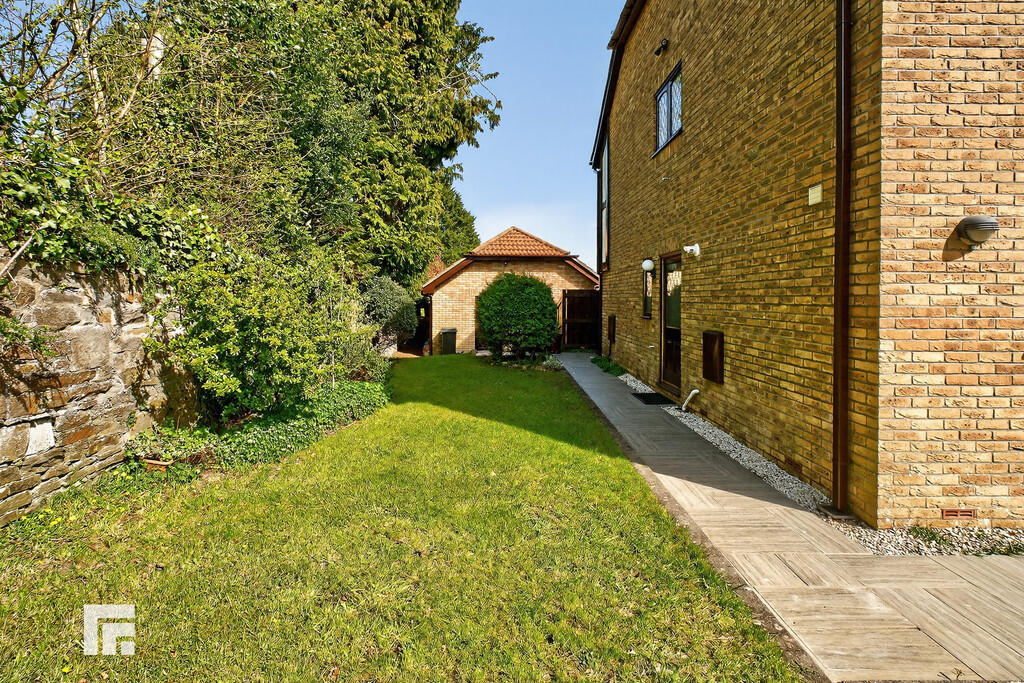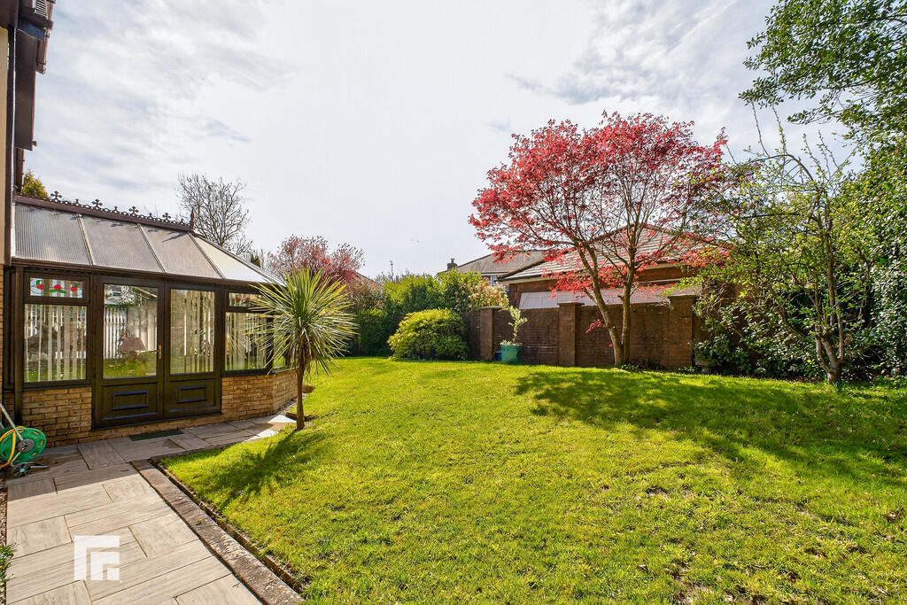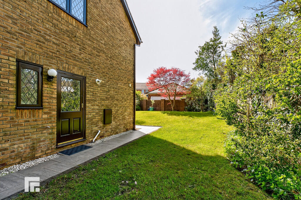 REARGARDEN Bordered by a wall, a westerly facing rear, wrap around garden. Large area of lawn with paved patio and pathway which wraps around the side to another beautifully maintained lawn area/side garden. Timber gate to side for access. Side door into garage for access via the garden.