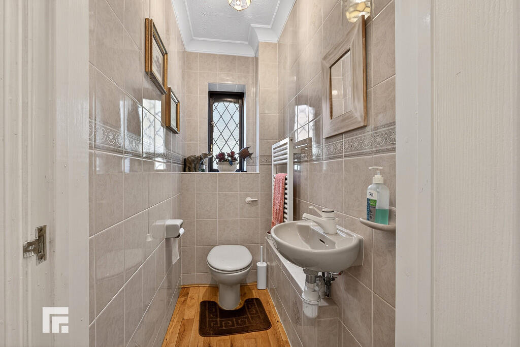 CLOAKROOM6' 5" x 3' 1" (1.96m x 0.94m) Low level WC and floating wash hand basin. Fully tiled walls. Oak wood flooring. Ladder radiator. Double glazed window to side.