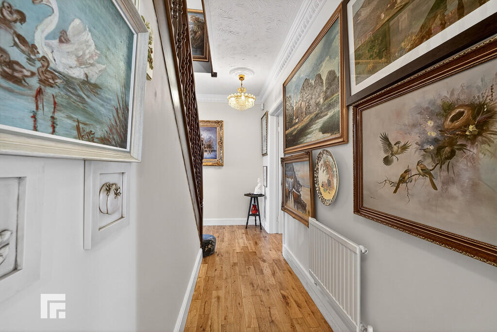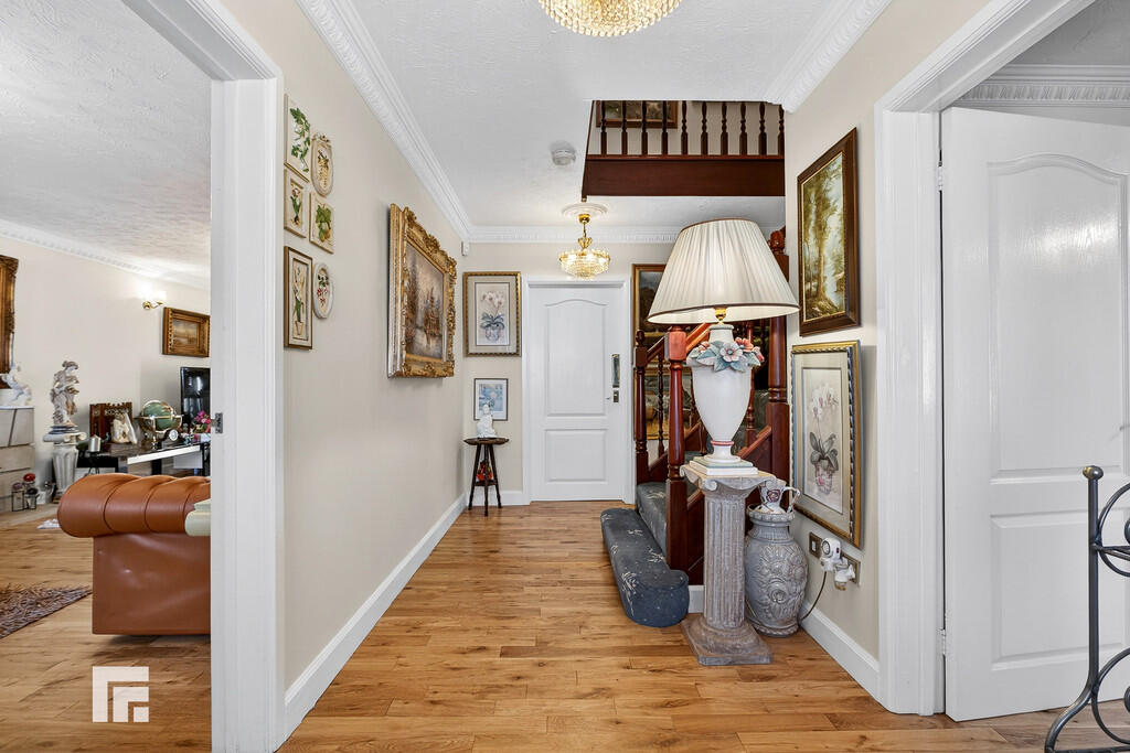 ENTRANCE16' 5" x 15' 10" (5.01m x 4.85m) Entered via double hardwood doors with stained glass windows, into hallway. Oak wood flooring. Doors lounge, dining room, kitchen, utility room, sitting room and WC. Stairs to first floor with storage cupboard under. Two radiators.