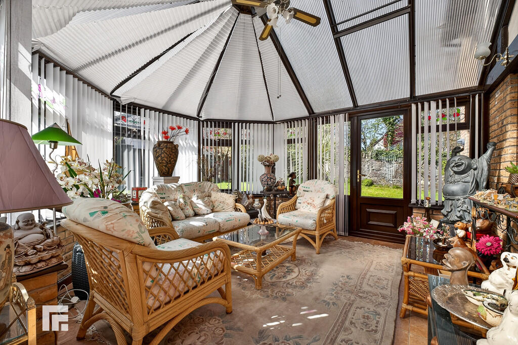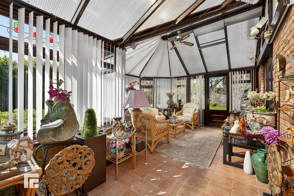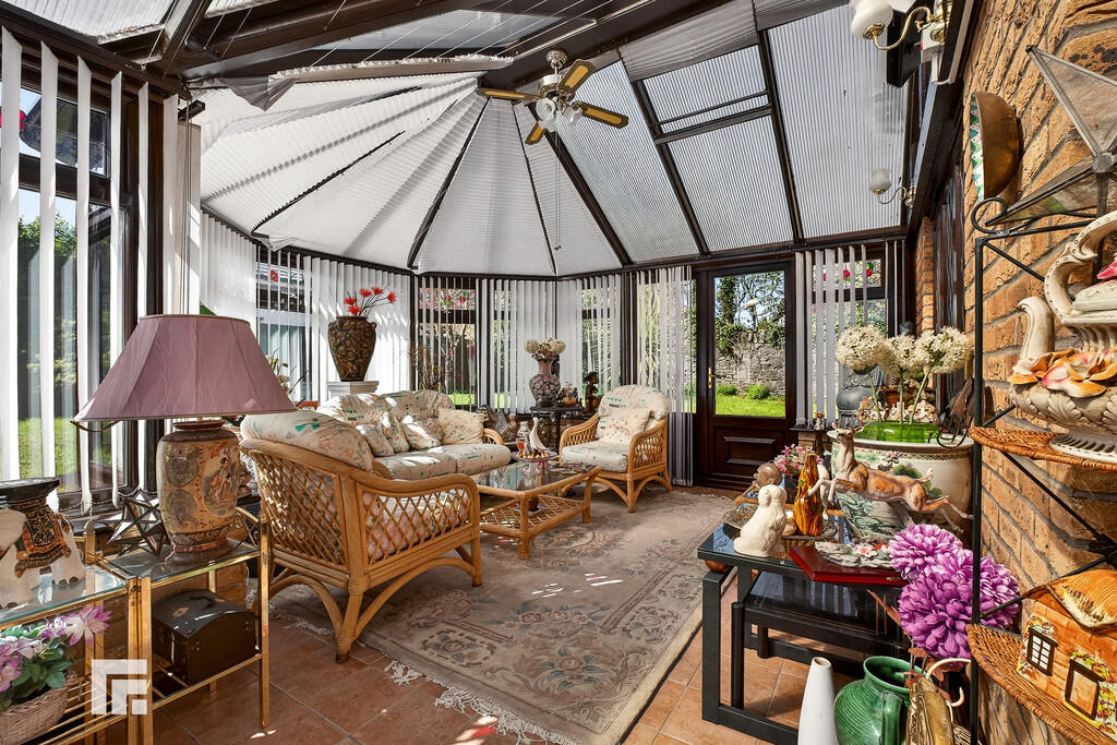CONSERVATORY23' 8" x 14' 7" max (7.23m x 4.47m) A Leekes conservatory with double glazed hardwood windows to all aspects, with external door to side. Fan light and electric wall heater. Tiled flooring.
