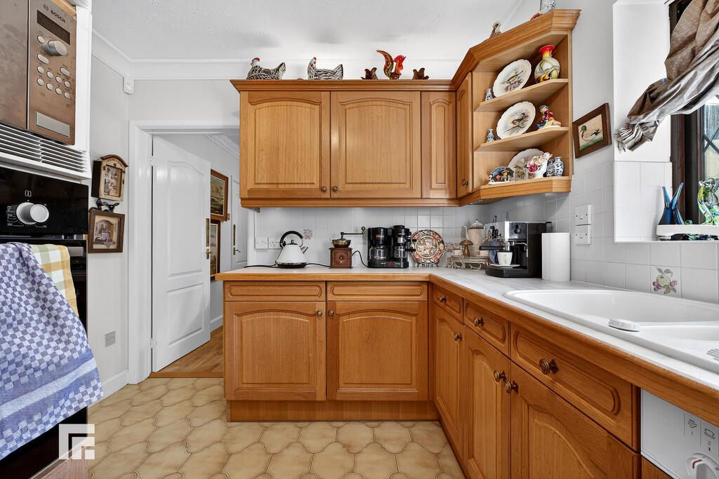 KITCHEN11' 8" x 9' 2" (3.57m x 2.80m) A well appointed kitchen fitted with a range of base and eye level units incorporating one and a half bowl composite sink and drainer with complementary work surfaces. Fitted electric oven and gas hob with extractor fan over. Integrated fridge, freezer and dishwasher. Tiled splash backs and flooring. Plinth heater. Double glazed window to rear overlooking the garden. Door to dining room.