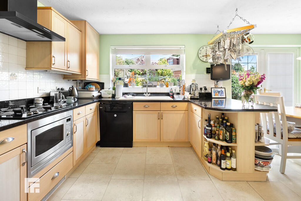 KITCHEN11' 7" x 17' 5" (3.550 m x 5.333 m) A range of base and wall mounted cabinets with contrasting square edge countertops. Dishwasher. Integrated oven. Four ring gas hob with extractor fan above. Ceramic sink unit. uPVC window to rear aspect. Built-in storage cupboard/pantry. Access to utility room.