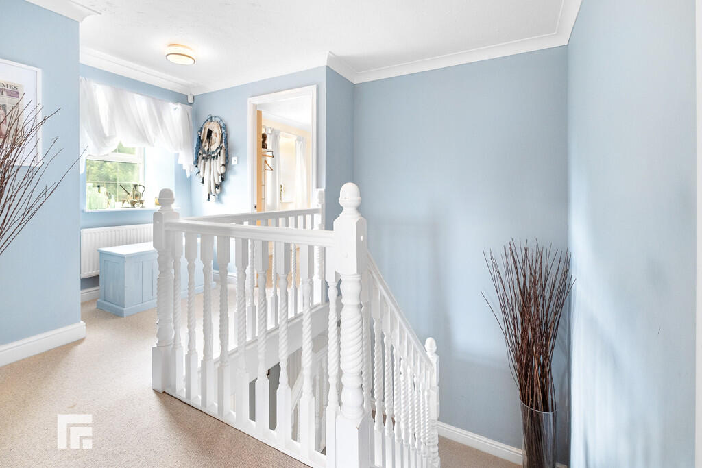 LANDING10' 1" x 10' 10" (3.075 m x 3.323 m) uPVC window front aspect. Two radiators. Coving. Loft hatch. Doors to all rooms.