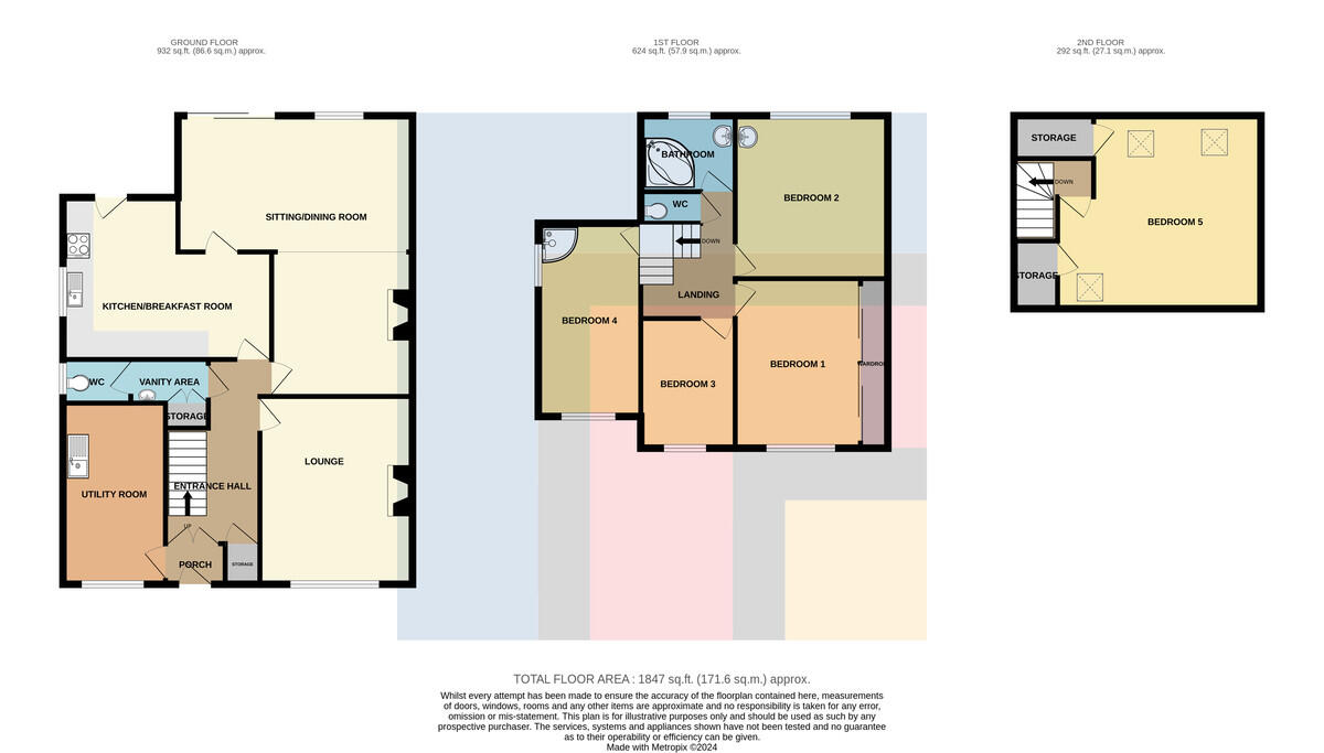 VANITYAREAANDW.C7' 0" x 4' 0" (2.14m x 1.22m) Storage cupboard. Vanity enclosed wash hand basin with hot and cold taps. Fitted Medicine cabinet. Radiator. Door to w.c. with obscured double glazed window to side, half tiled walls. Tiled floor.
