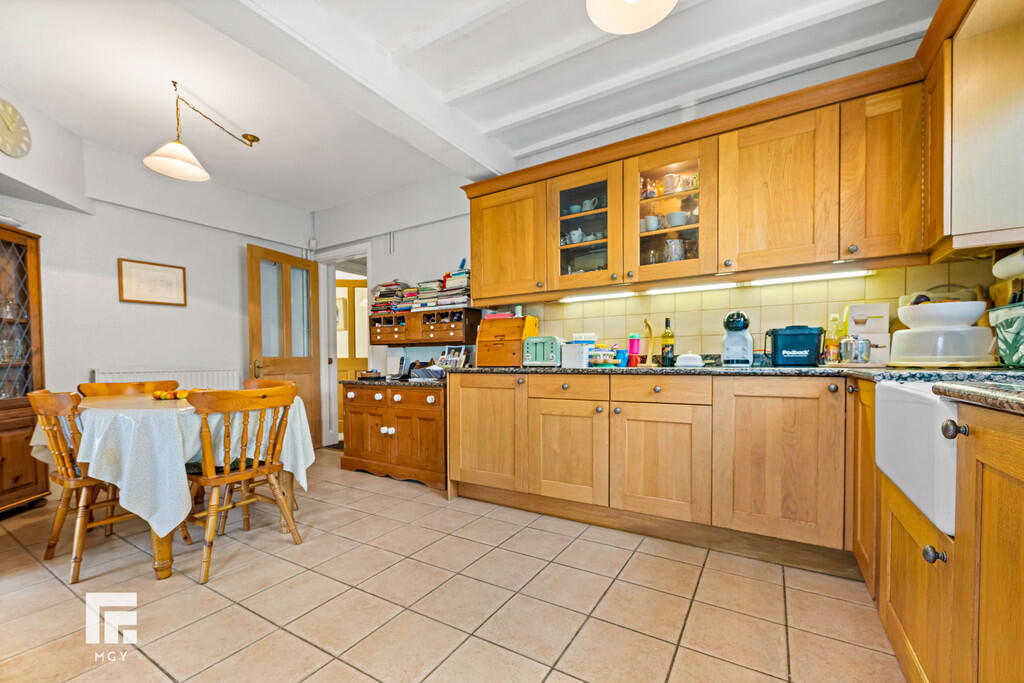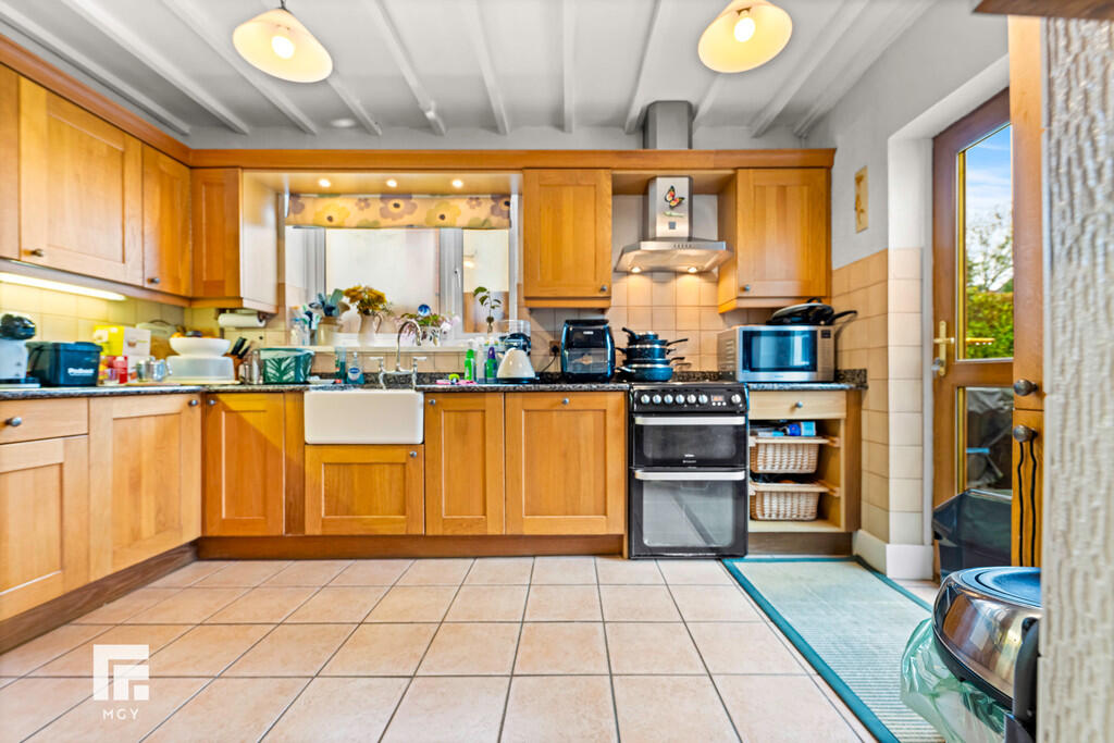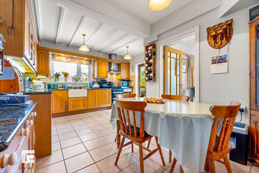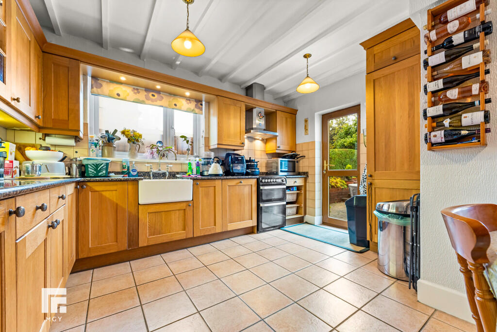 KITCHEN/BREAKFASTROOM16' 9" x 13' 5" max (5.12m x 4.09m) Double glazed uPVC window to side. Double glazed uPVC door to rear garden. Tiled floor. Radiator. Cupboard housing 'Worcester' combi boiler. Fitted base and wall units with granite work surfaces and tiled splash backs incorporating Belfast sink with mixer tap. Space for electric oven. Door to dining room. And door to entrance hall.