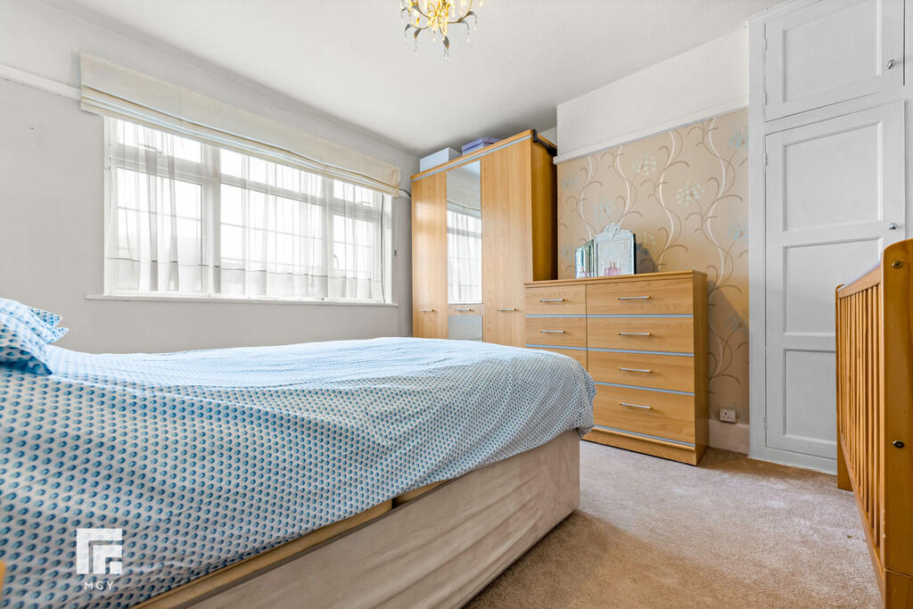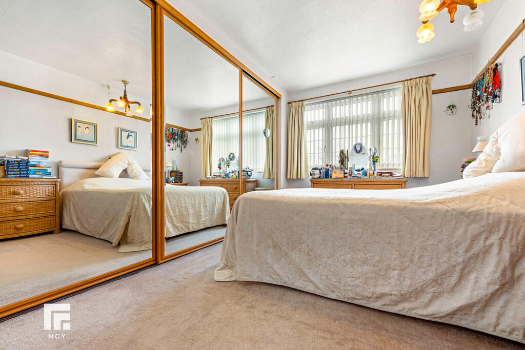 BEDROOMONE14' 7" x 8' 9" to front of fitted wardrobes (4.47m x 2.69m) Double glazed uPVC window to front. Fitted mirror fronted wardrobes. Picture rail. Radiator.
