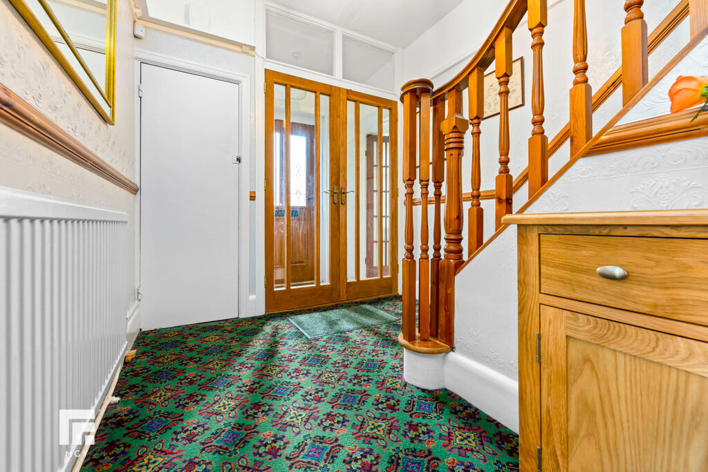 ENTRANCEHALL Radiator. Cloak cupboard. Dado rail. Stairs to first floor. Plate racks. Door to :-