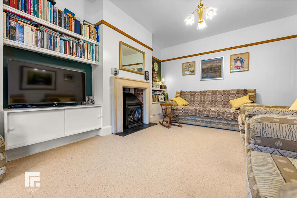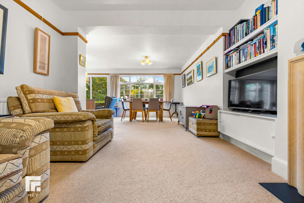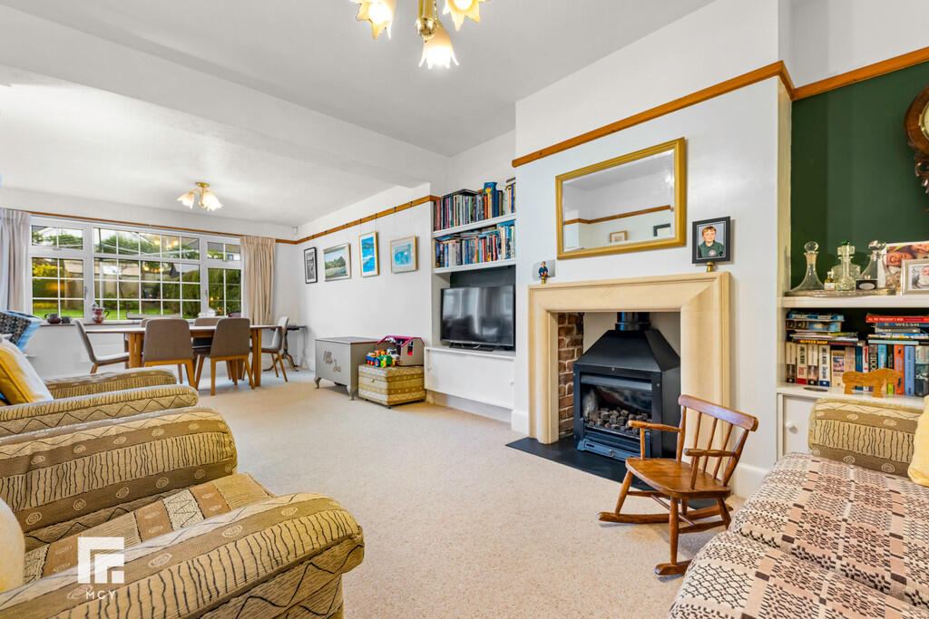 SITTING/DININGROOM24' 6" x 18' 4" (7.49m x 5.59m) A large L shaped room with double glazed windows to side and rear. Sliding double glazed door to rear garden. Radiator. Stone fireplace with inset coal effect gas fire. 2 central heating radiators and one electric panel heater.