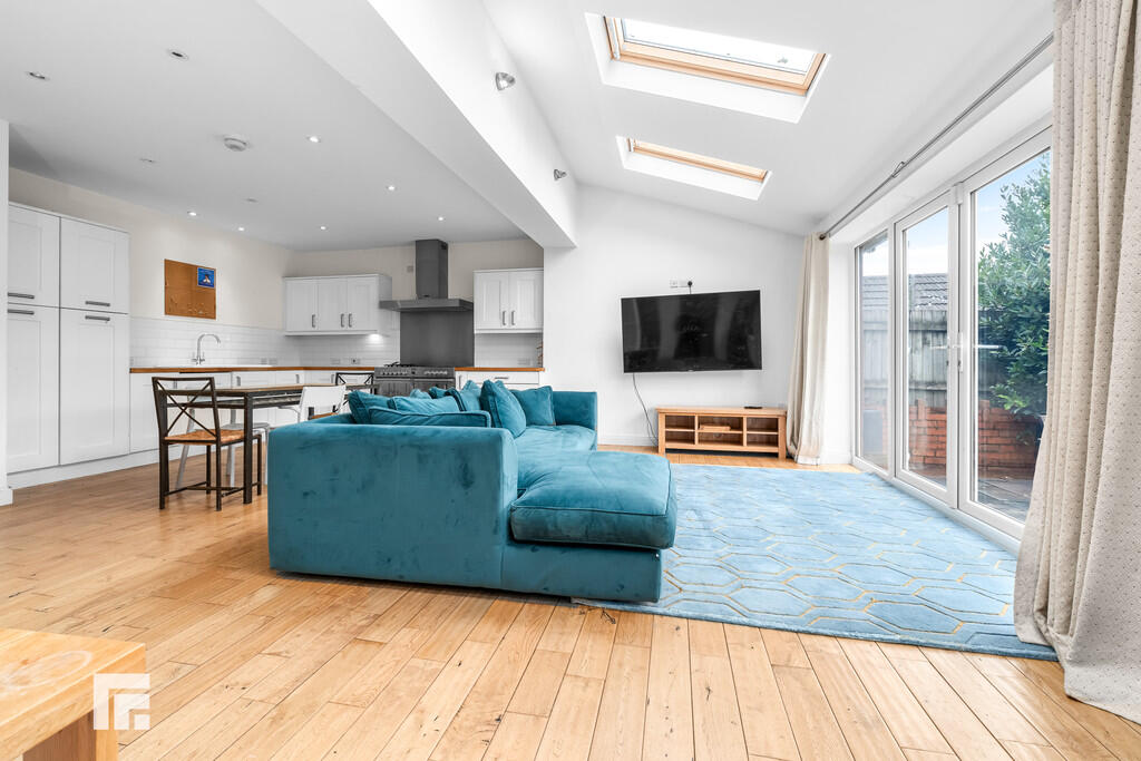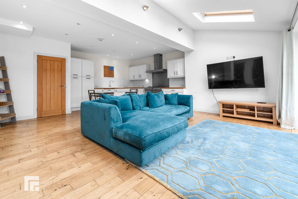 KITCHEN/DINER/FAMILYROOM22' 11" x 22' 6" (7.00m x 6.86m) Double glazed uPVC doors and window overlooking rear garden. Four velux skylights. Wood flooring. Base and wall units with wooden work surfaces and tiled splash backs incorporating ceramic sink unit and mixer tap. Stoves range cooker included. Space for fridge / freezer. Two radiators. Door to garage, utility and w.c.
