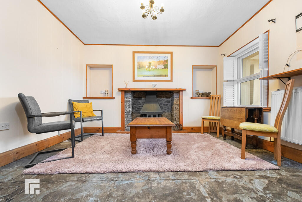 LOUNGE12' 6" x 12' 7" (3.821m x 3.841m) uPVC double glazed window to rear with fantastic views. Radiator. Door to rear patio area and access to outside wc. Feature stone fireplace housing working fire. Door to bedroom.