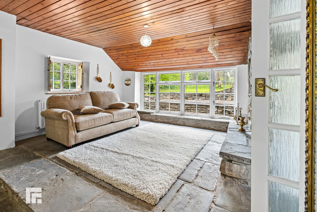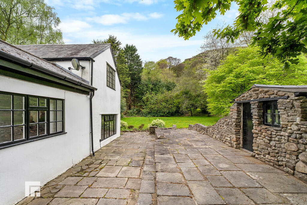 ** SIX BEDROOM COTTAGE ** IDYLIC LOCATION ** ON A PLOT OF APPROX JUST OVER TWO ACRES ** A delightful six bedroom cottage retaining much charm and character, in an idyllic setting, built in approx the 1840’s and previously two cottages knocked into one many years ago by the previous owners. Enjoying tranquil gardens of approx 2 acres. Large lounge with french doors to the rear garden, sitting and family room, sizeable dining room, playroom/study, modern fitted kitchen and there is a ground floor shower room. The first floor can be accessed via two staircases either side of the property, there are six bedrooms, the primary bedroom has a large dressing room and the second bedroom benefits from an ensuite bathroom, there is also a family bathroom. Gas central heating. Entrance gates to front leading to the long and wide driveway. Tranquil gardens with large paved patio and lawn leading to the River Taff. Stone built out buildings used from storage. EPC Rating:
