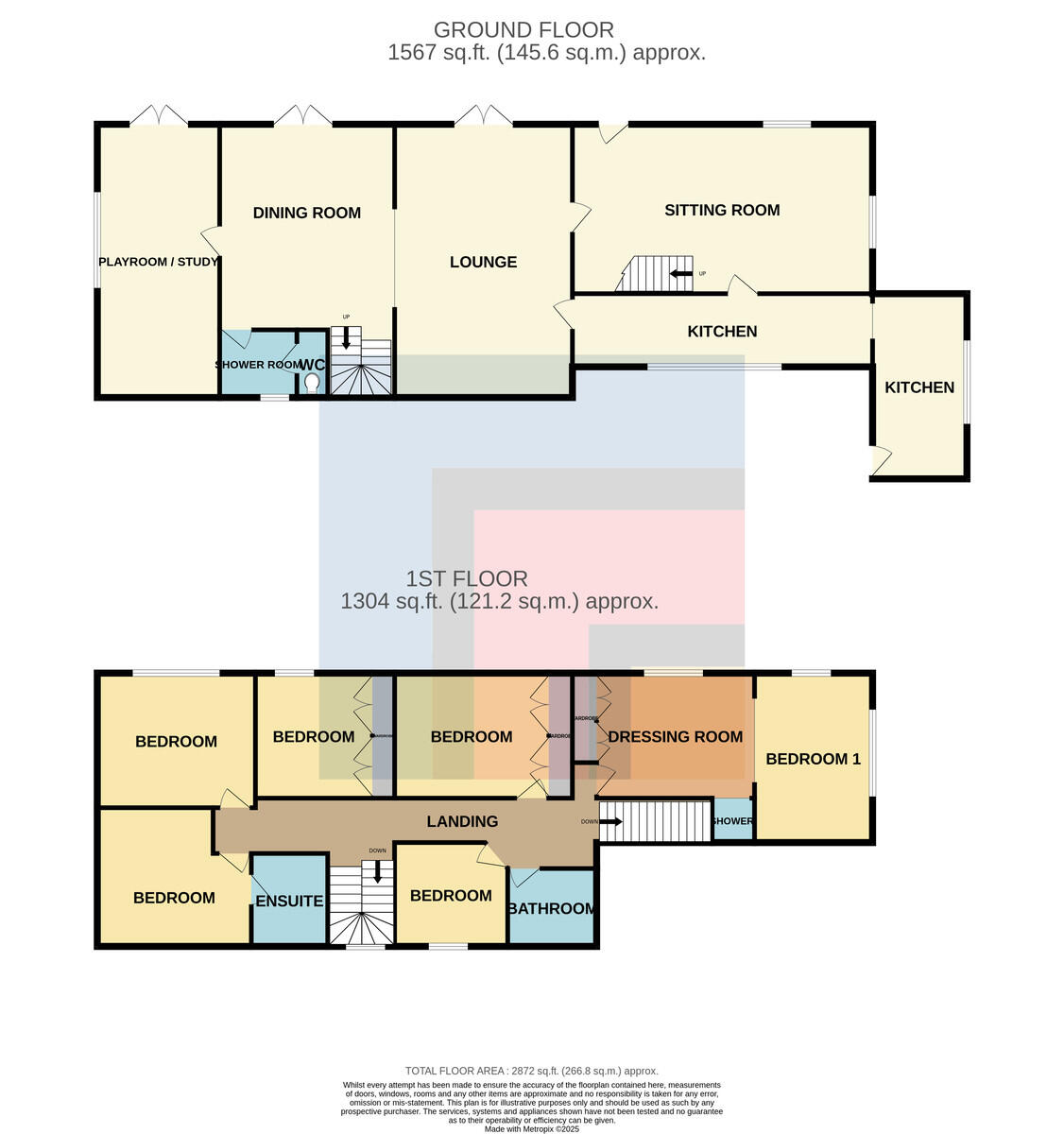 LANDING Approached via a full turning staircase leading to the long central landing. Additional staircase from sitting room. Window to front.