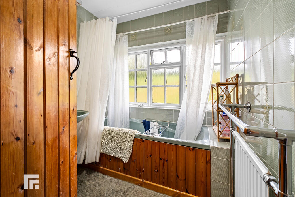 ENSUITEBATHROOM7' 10" x 6' 3" (2.40m x 1.93m) A sizeable ensuite comprising low level wc, wash hand basin, wood panelled bath. Full wall tiling. Obscured glass window to front. Radiator.