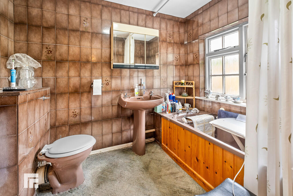 FAMILYBATHROOM6' 7" x 6' 3" (2.01m x 1.91m) Comprising low level wc, wash hand basin, panelled bath. Obscured glass window. Full wall tiling. Electric shaver point. Radiator.