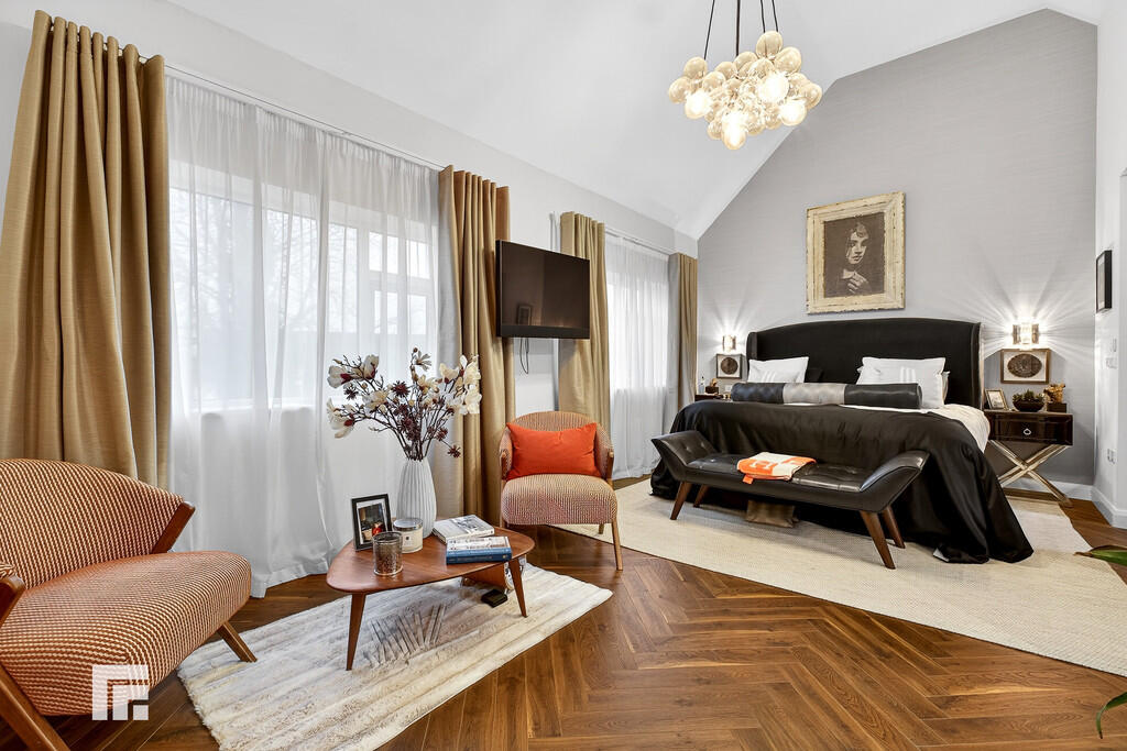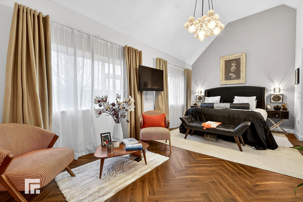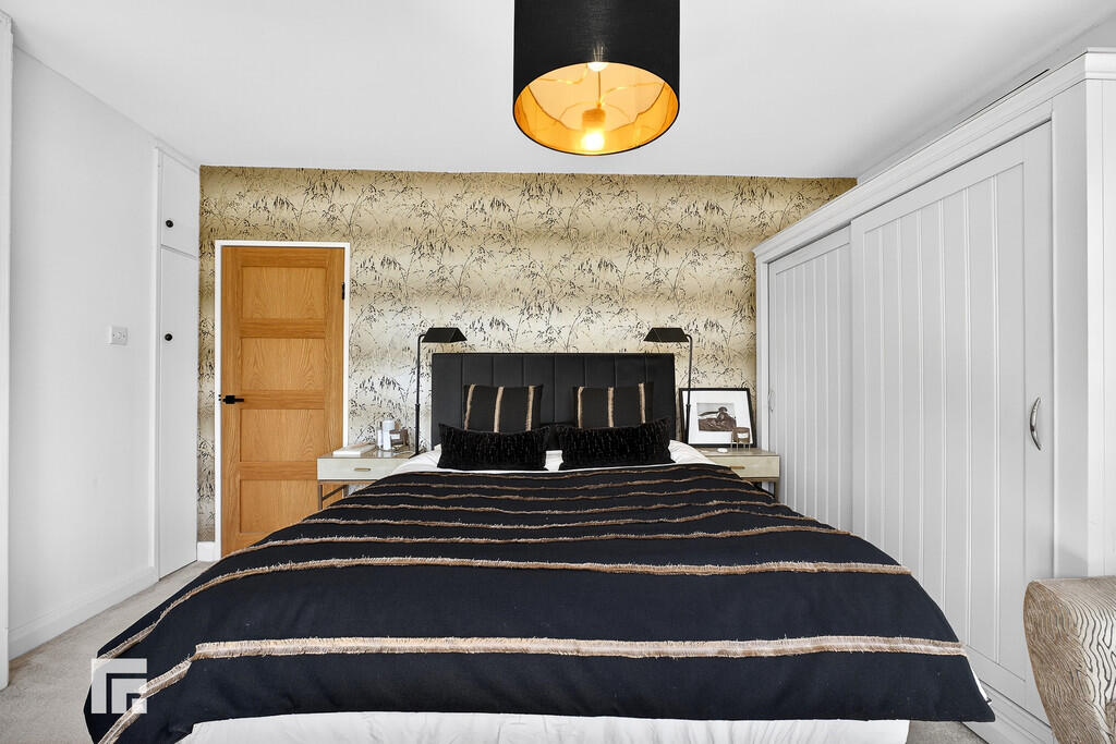 PRINCIPALBEDROOM21' 10" x 11' 2" (6.671m x 3.406m) An impressive master suite with two large double glazed windows to front aspect. Feature vaulted ceiling with light point. Luxury vinyl tile flooring, herringbone design, with electric underfloor heating. TV point and power points. Opening into en-suite and separate dressing room.
