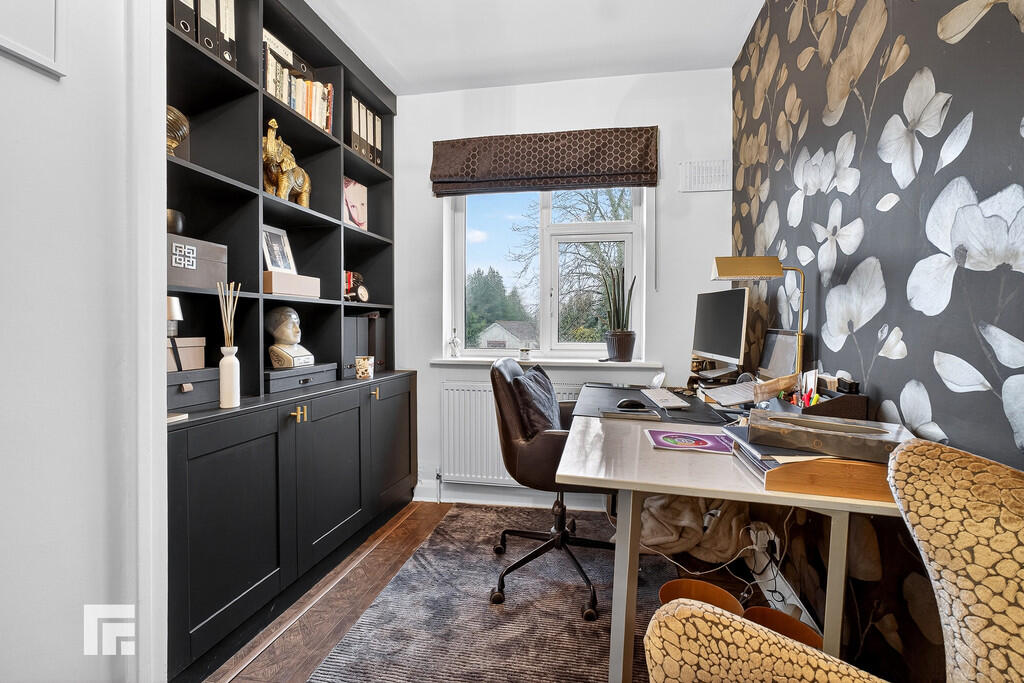 BEDROOMFIVE12' 1" x 7' 7" (3.707m x 2.335m) Double glazed window to front aspect. Luxury vinyl tile flooring. This room is currently used as an office with feature display unit and storage cupboards fitted to one wall. Central heating radiator and power points. Access hatch to boarded loft space with pull down ladder.