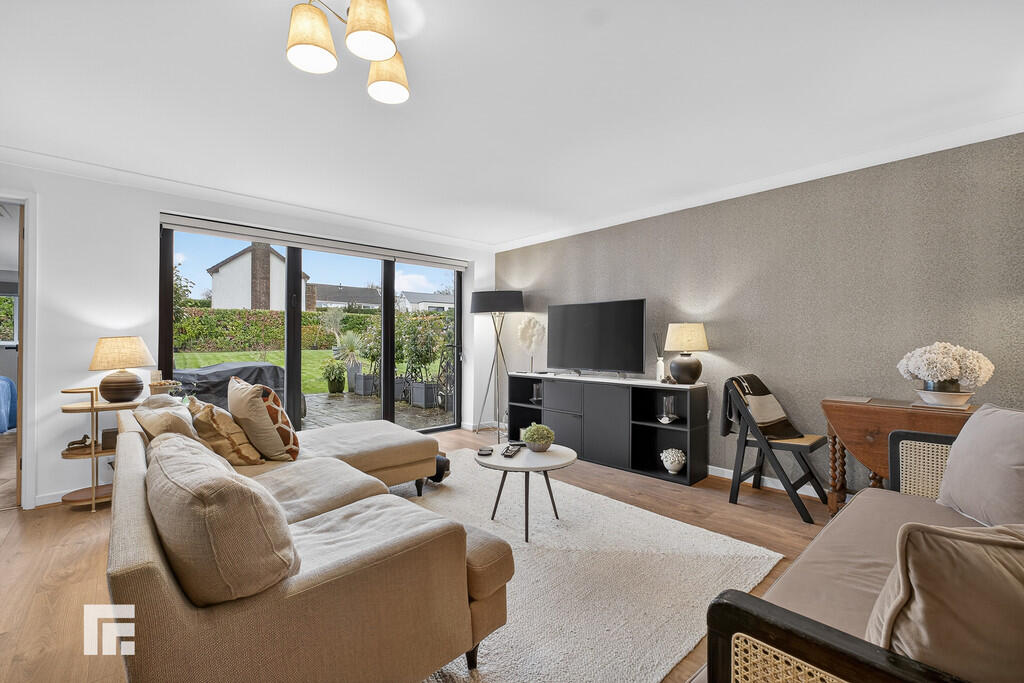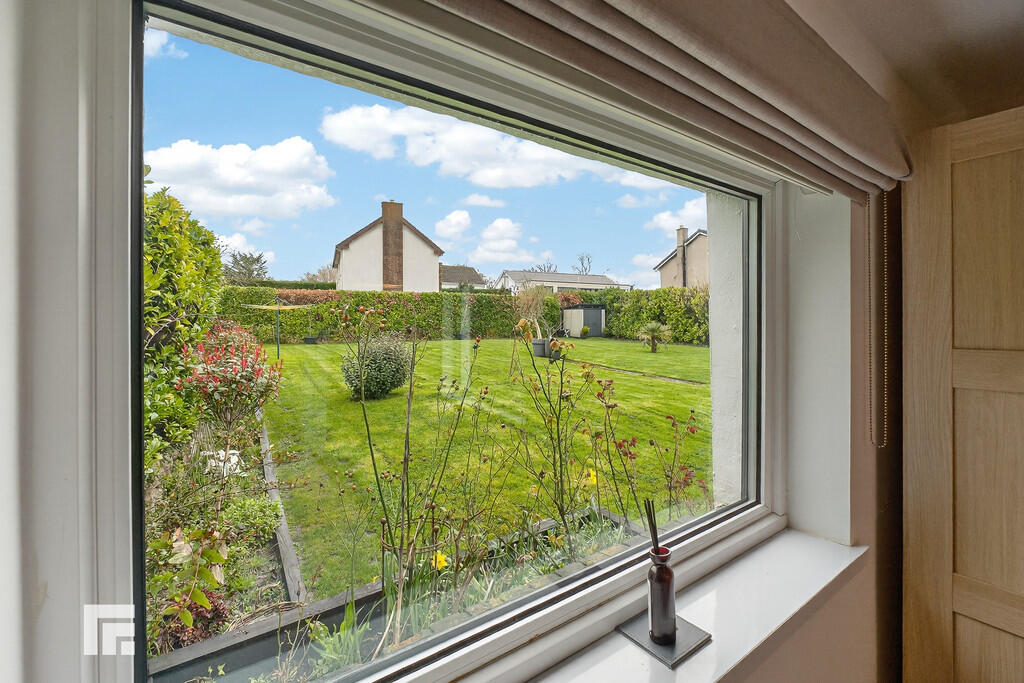 FRONTGARDEN A large newly laid gravelled driveway to front of the property with established lawned areas, trees and hedging. Side gate giving access to rear.