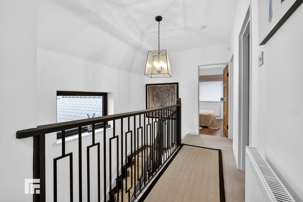 FIRSTFLOORLANDING Stairs with feature wrought iron balustrading. Double glazed window. Wooden panelled doors to all rooms. Central heating radiator and power points.