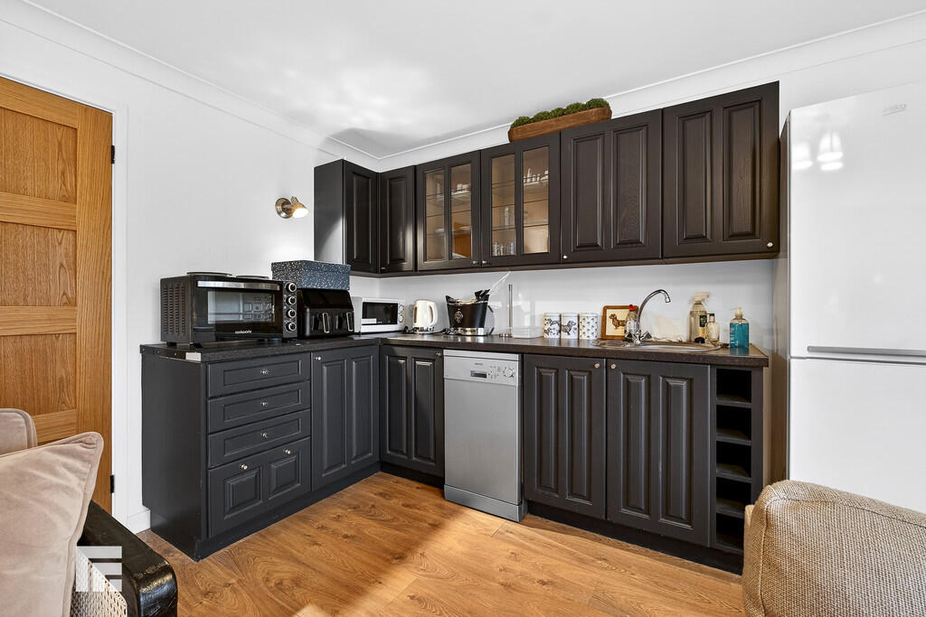 OPENPLANLIVING/KITCHEN18' 1" x 16' 3" (5.519m x 4.956m) A great addition to the property is this self contained granny/teenage annex accessed from the main hallway. Open plan living/kitchen with bi folding doors leading to rear garden and patio area. Luxury vinyl tile flooring. Two central heating radiators, tv point and power points. Kitchen area fitted with wall and base units with work surfaces incorporating stainless steel sink unit and mixer tap. Dish washer and free standing fridge freezer to remain. Door into;