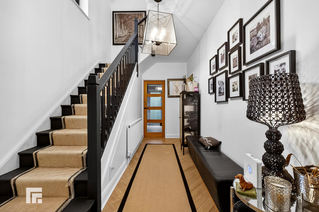 INNERHALLWAY Continuation of luxury vinyl tile flooring. Stairs to first floor with modern wrought iron balustrading. Ceiling light point and power points. Wooden panelled doors to all rooms and glazed door leading to utility area and kitchen.