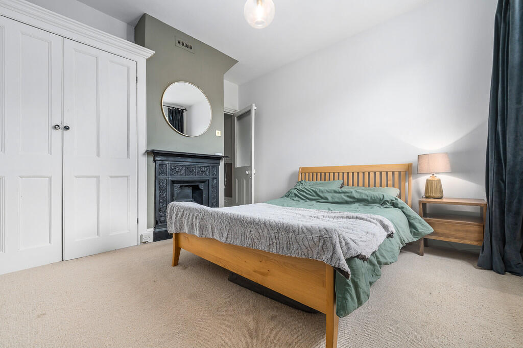 BEDROOMTHREE Again a good size double bedroom with sash window to rear. Original cast iron fireplace. Built in cupboard. Deep skirting boards, power points.