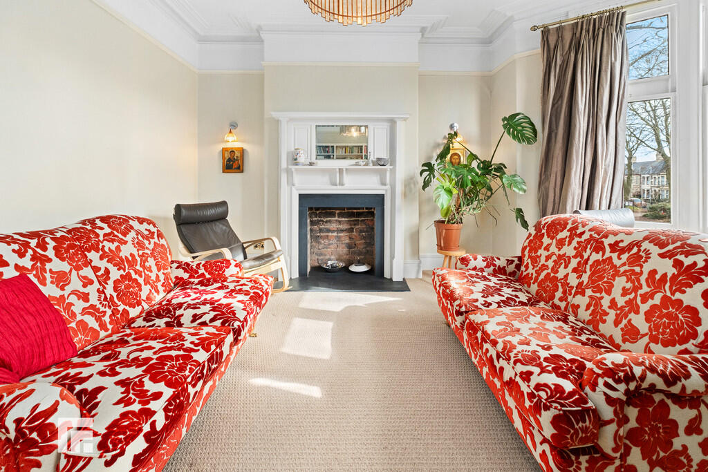 LOUNGE14' 5" x 14' 4" (4.41m x 4.39m) Wood flooring. Original coving to ceiling. Pendant light fitting with ceiling rose. Bay window to front aspect. Power points. Radiator. TV and telephone point. Open fireplace. Alcoves - one with built in storage.