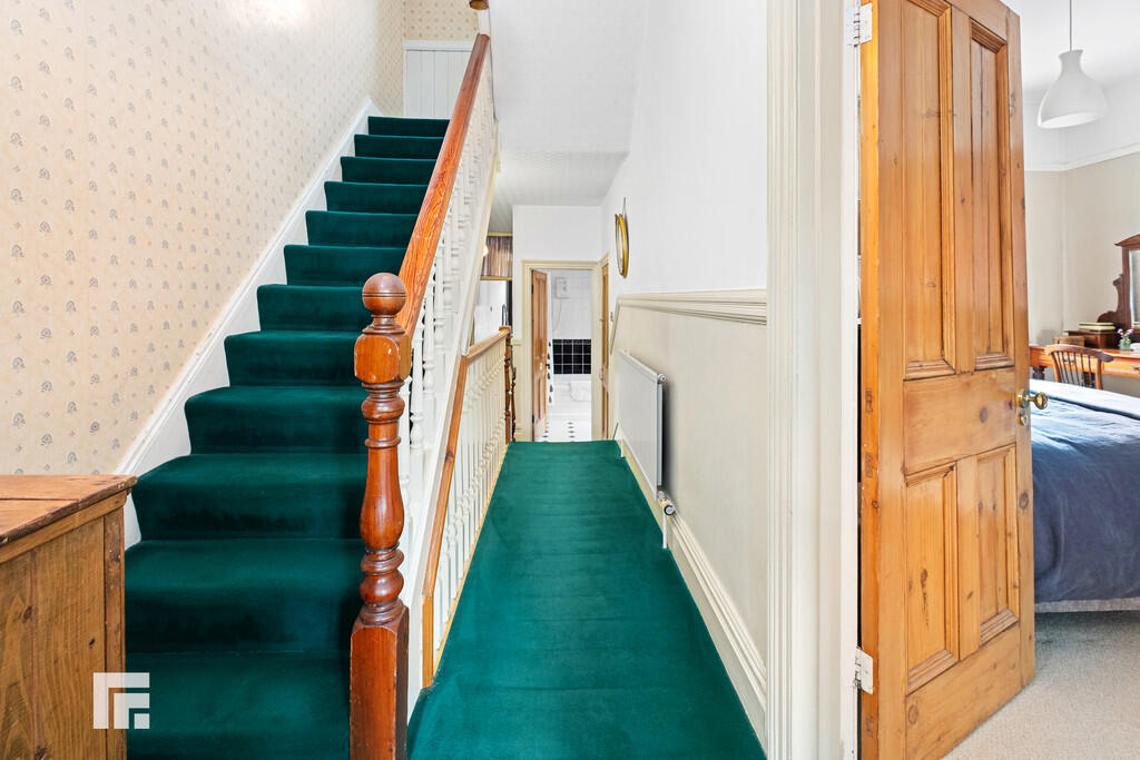 FIRSTFLOOR Carpet runner up stairs and on landing. Dado rail. Pendant light fitting. Doors leading to three bedrooms, family bathroom and utility. Radiator.