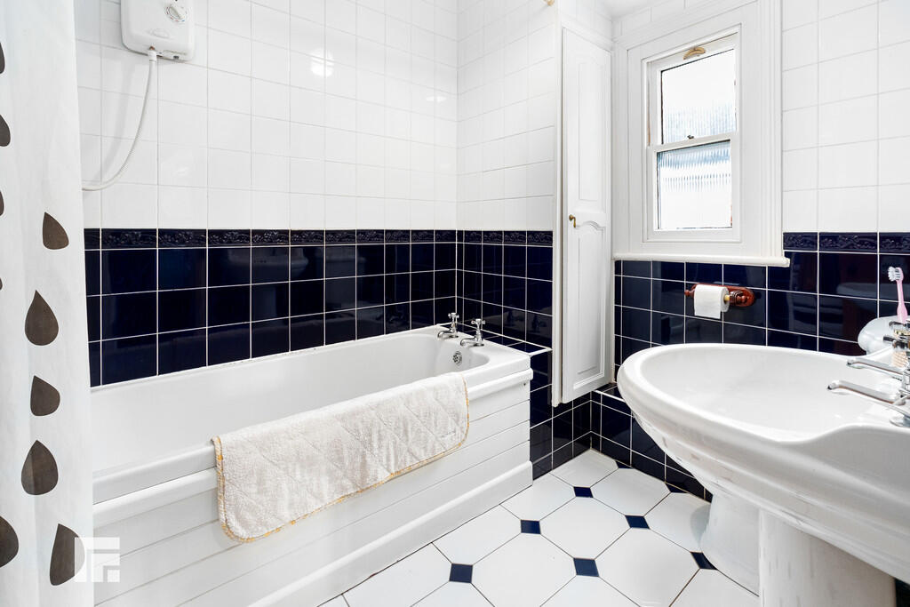 BATHROOM Tiled flooring and walls. WC. Pedestal wash hand basin with hot and cold tap over. Panelled bath with hot and cold tap over and electric powered shower above. Pendant light fitting. Heated towel rail. Obscure window to side aspect.