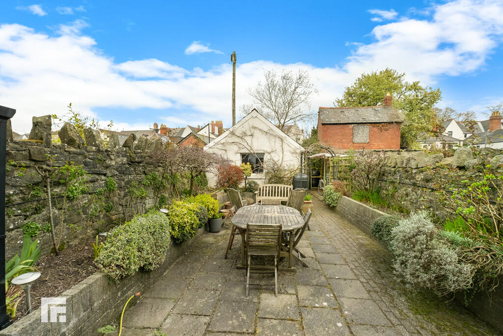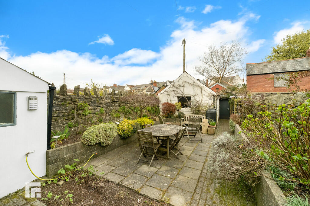 OUTSIDE Mature East Facing Garden. Laid to patio. Wall border. Outside WC. Outside tap. Access to garage. Gate leading to rear lane.