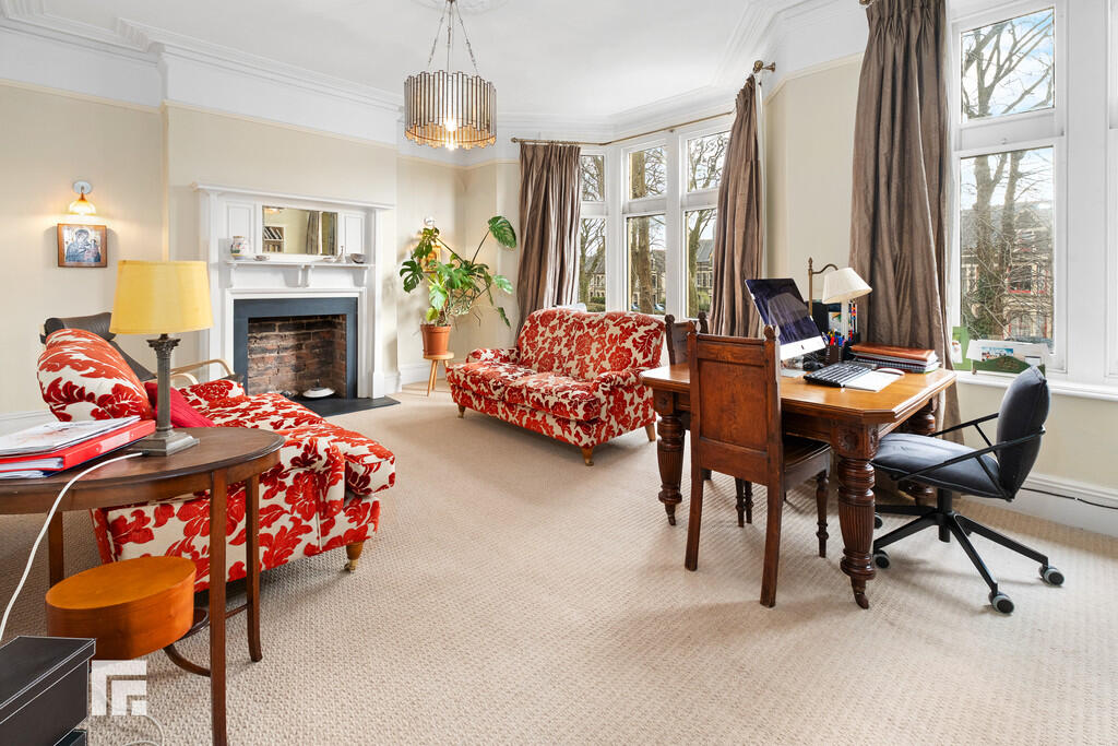 MASTERBEDROOM18' 10" x 14' 5" (5.76m x 4.41m) Carpet to floor. Bay windows to front aspect with additional window alongside - both overlooking the Gardens. Coving to ceiling. Pendant light fitting with ceiling rose and additional wall lighting. Feature fireplace with alcoves either side. Picture rail. Power points. Radiator.