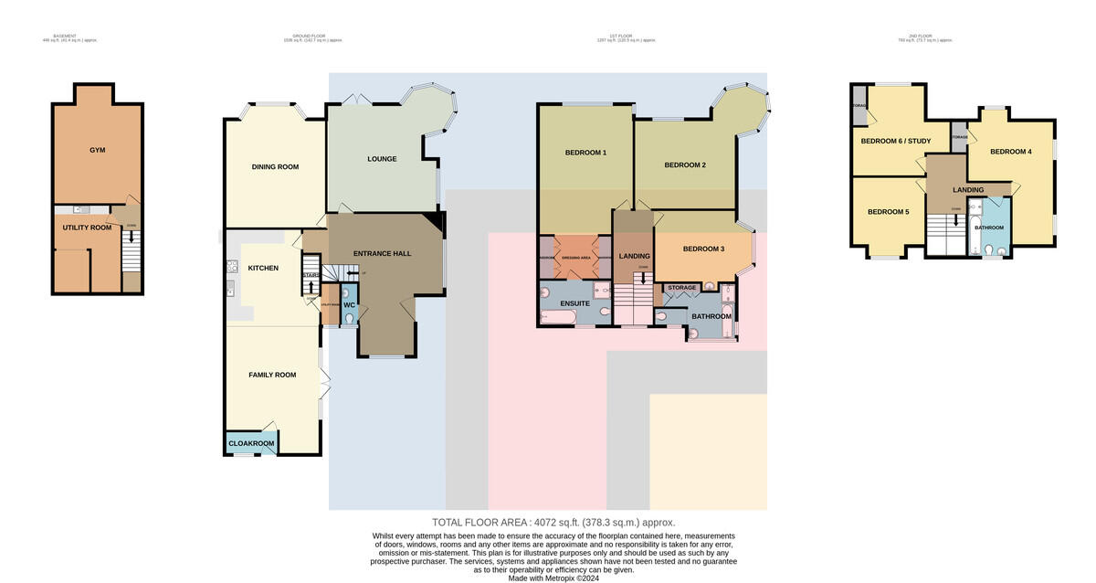 FAMILYBATHROOMTWO9' 10" x 6' 9" (3.01m x 2.07m) Modern white suite comprising low level wc, wash hand basin, panelled bath with shower mixer tap, wide shower cubicle with chrome shower. Tiled splashback. Obscured glass window. Extractor fan. Recessed spotlights. Chrome heated towel rail.