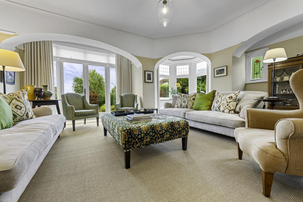 LOUNGE18' 7" x 17' 10" (5.68m x 5.45m) An exceptional primary reception with feature side turret with windows overlooking the rear garden. Stained glass windows to side. French doors to rear garden. Radiator.