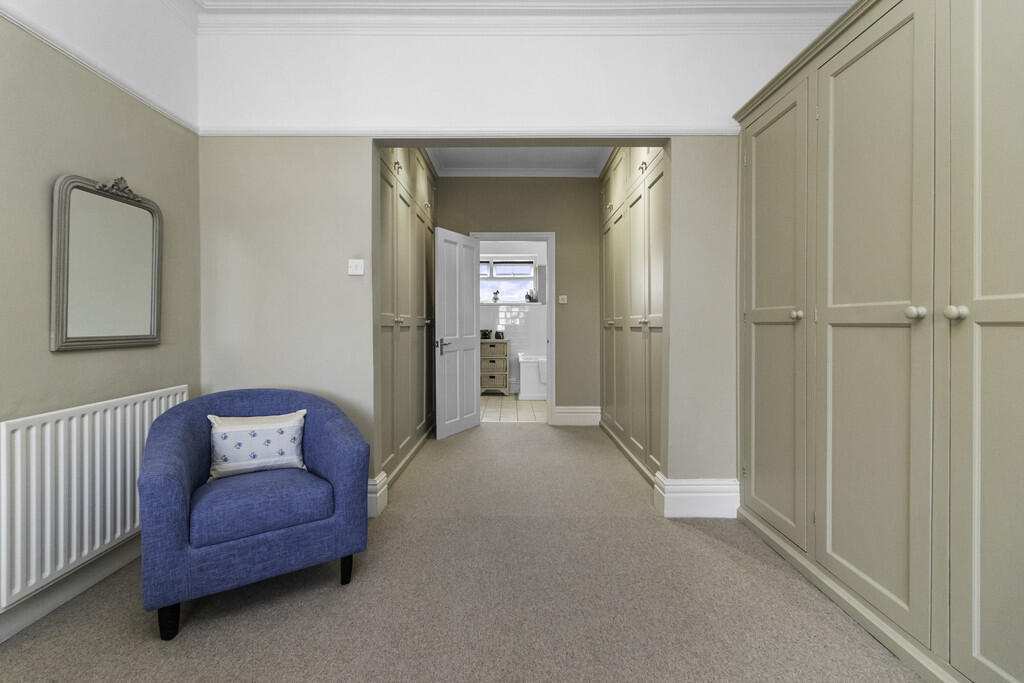 BEDROOMONE29' 1" x 14' 7" (8.89m x 4.47m) A fantastic principal suite expanding 29 ft. With bespoke fitted wardrobes to one wall and into the dressing area. Cupboard housing hot water tank. Double glazed windows to side and rear with beautiful views towards Cardiff City Centre. Radiator. Door to en-suite.