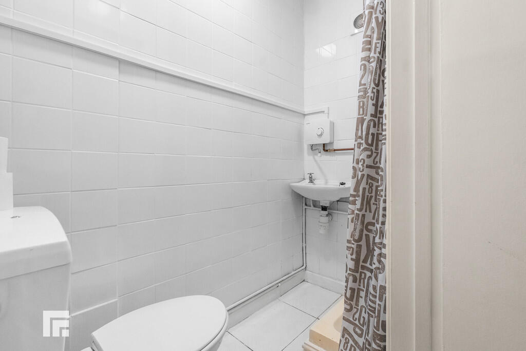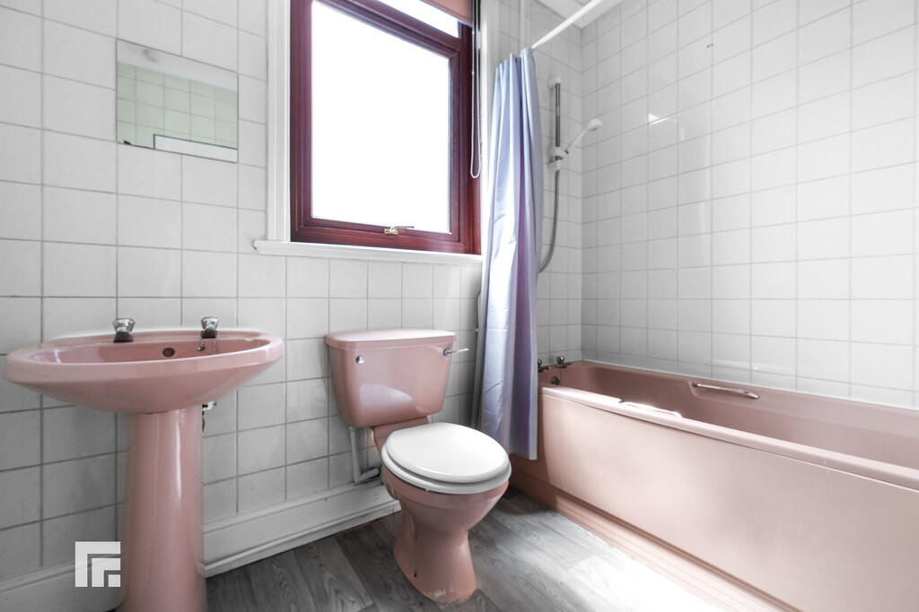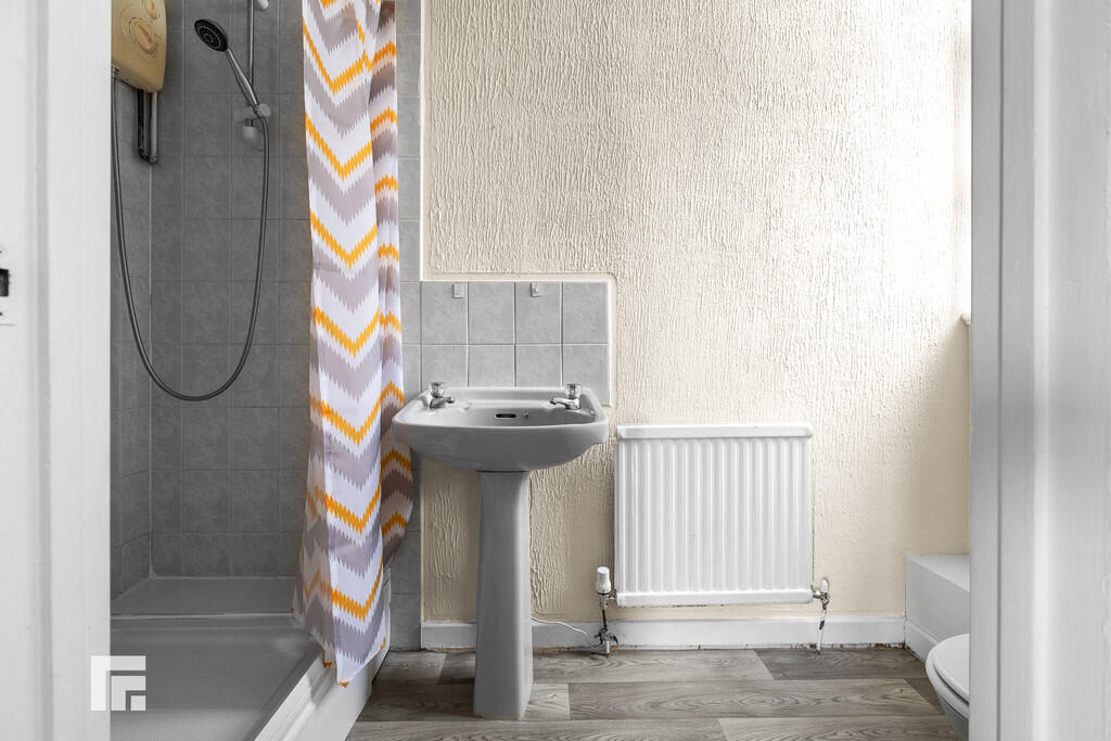 Bedsit 7 Separate Bathroom with closed cistern w.c, wash hand basin with taps over and bath with taps over. Electric shower over. Vinyl flooring. Double glazed opaque window to the rear. Opaque window to landing. Ceramic tile to splash back. Radiator.