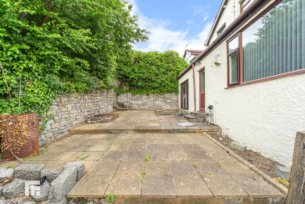 To the rear: Garden laid to paving with mature trees and shrubs. Access to rear of property.